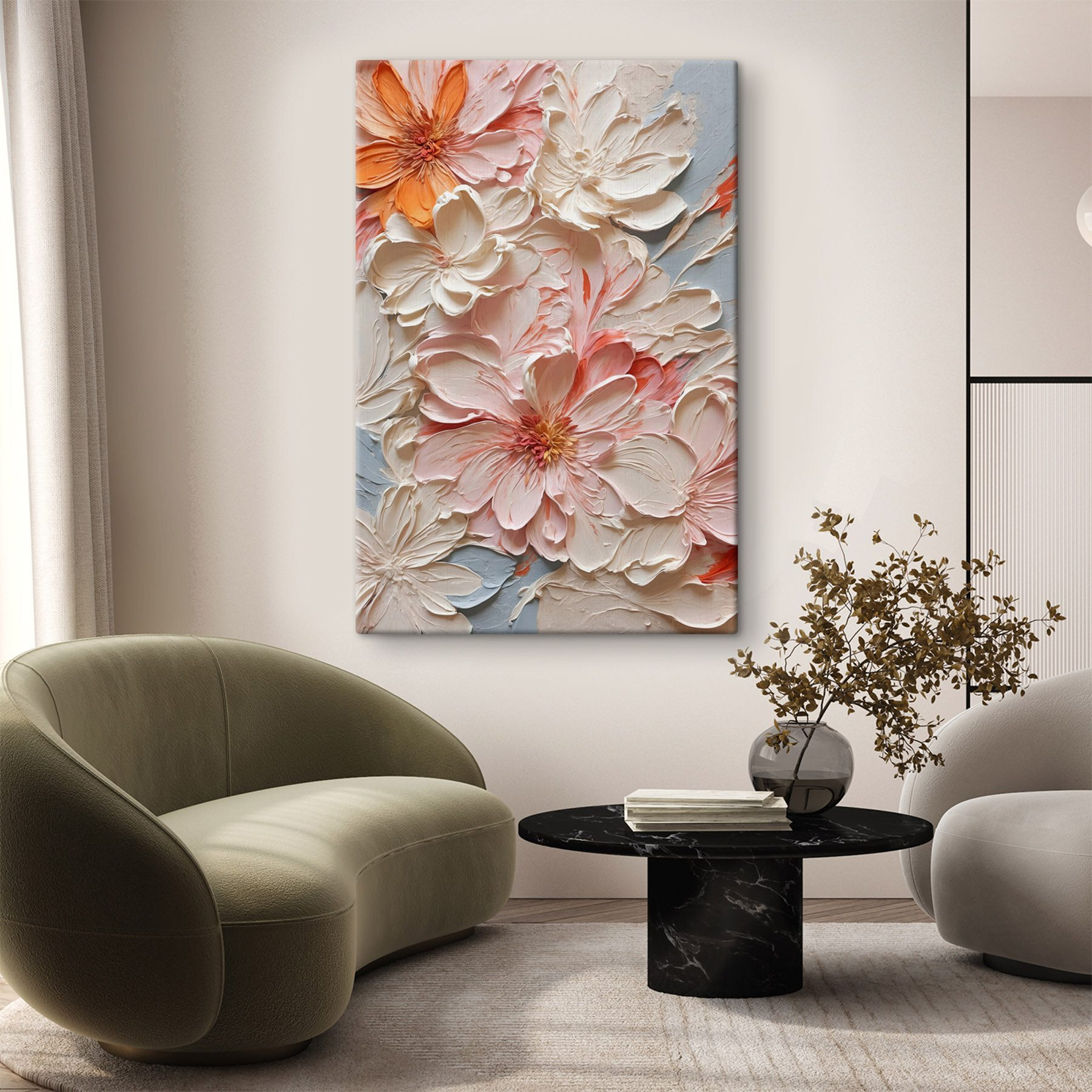 Verschönern Sie jeden Raum mit diesem herrlichen Leinwanddruck “Floral Beauty in Vibrant Hues”. Stellen Sie sich vor, Sie betreten einen Raum und spüren sofort einen Ausbruch von Freude – wie eine Gartenparty in voller Blüte! Die atemberaubenden Blumen tanzen vor einem sanften Hintergrund und bilden eine Sinfonie der Farben, die alle Blicke auf sich zieht. Man fühlt sich wie im Frühling, egal welche Jahreszeit draußen herrscht. Das Kunstwerk eignet sich perfekt für eine leere Wand und sorgt für einen lebendigen Akzent und einen Hauch von Wärme. Ihre Gäste könnten es mit einem Fenster zu einer Blumenwiese verwechseln. Jasper, der Kater, liebt es, darunter ein Nickerchen zu machen – bei diesen Farben muss man ihn einfach im Auge behalten! Diese Leinwand ist mehr als nur Dekoration; sie ist eine Einladung, täglich ein wenig Glück zu erleben.