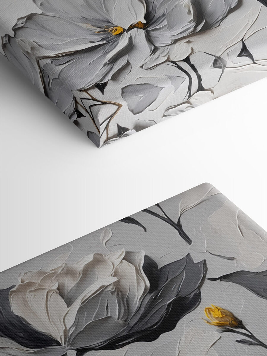 Verschönern Sie jede Ecke mit diesem hübschen Leinwanddruck, der anmutige Blumen auf einem zarten weißen Hintergrund zeigt. Es ist, als würde man einen Garten ins Haus holen, nur ohne die Allergien! Die sanften Farbtöne harmonieren perfekt und schaffen eine ruhige Atmosphäre, die einfach gut tut. Stellen Sie sich vor, Sie schlürfen einen Kaffee und vergessen die Zeit, während Sie die üppigen Blütenblätter betrachten. Perfekt für ein Wohnzimmer oder eine gemütliche Leseecke – dieses Stück strahlt Eleganz und Wärme aus. Außerdem sorgt es für Gesprächsstoff – Ihre Freunde werden sich fragen, ob Sie gerade einen Blumenurlaub gemacht haben! Ein kleines Stück Natur direkt an Ihrer Wand.