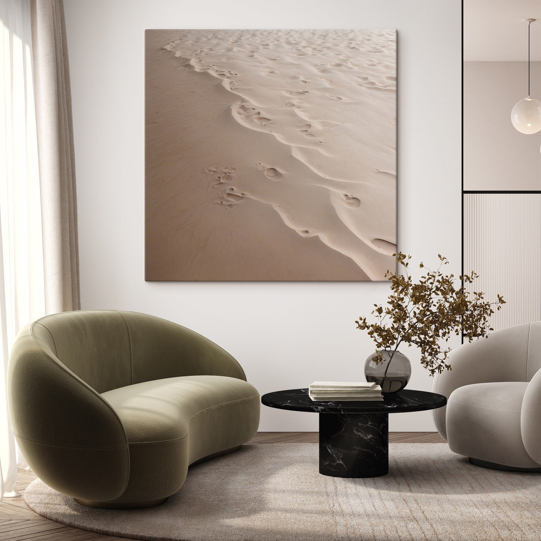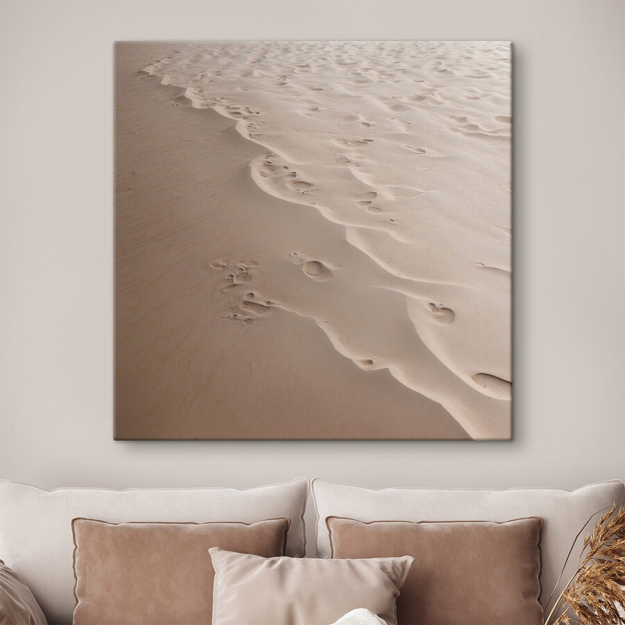 Bringen Sie ein Stück Ruhe in Ihren Raum mit dem Leinwanddruck “Footprints in the Sand”. Stellen Sie sich vor, wie Sie mit dem Blick auf diese ruhige Szene abdriften, in der sanfte Wellen das Ufer streicheln und nur einen Hauch des gestrigen Spaziergangs hinterlassen. Es ist wie ein warmer Strandtag, der für immer festgehalten wird und jeden daran erinnert, dass es im Leben um die Momente geht, die wir zurücklassen. Perfekt für die gemütliche Ecke, in der man sich entspannen möchte, oder als Gesprächsstoff, der zu Tagträumen anregt. Eine kleine Flucht direkt nach Hause – denn wer würde nicht gerne die Sandbrise spüren, während er an seinem Morgenkaffee nippt?