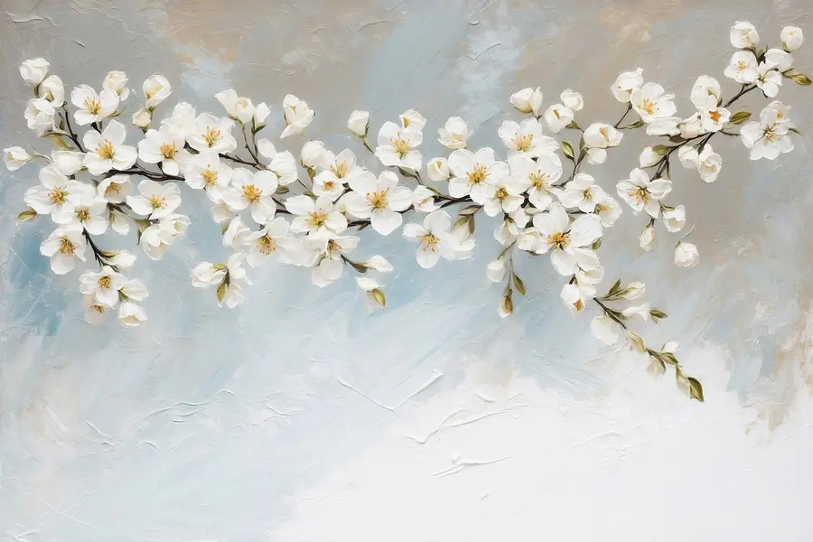 Dieser schöne Leinwanddruck mit zarten weißen Blumen auf einem Zweig bringt frischen Wind in jeden Raum. Es ist wie ein Hauch von frischer Luft direkt in Ihrem Wohnraum. Stellen Sie sich vor, Sie betreten eine gemütliche Ecke und werden von dieser beruhigenden Mischung aus Farben begrüßt – da wird einem ganz warm ums Herz! Das sanfte Blumendesign lädt die Natur mühelos ins Haus ein und schafft eine friedliche Atmosphäre, die sich perfekt für einen gemütlichen Nachmittag oder ein lebhaftes Beisammensein eignet. Außerdem ist es genau das Richtige, um zu Tagträumen und netten Gesprächen anzuregen. Hängen Sie ihn auf, und lassen Sie die Blüten ihren Charme entfalten!