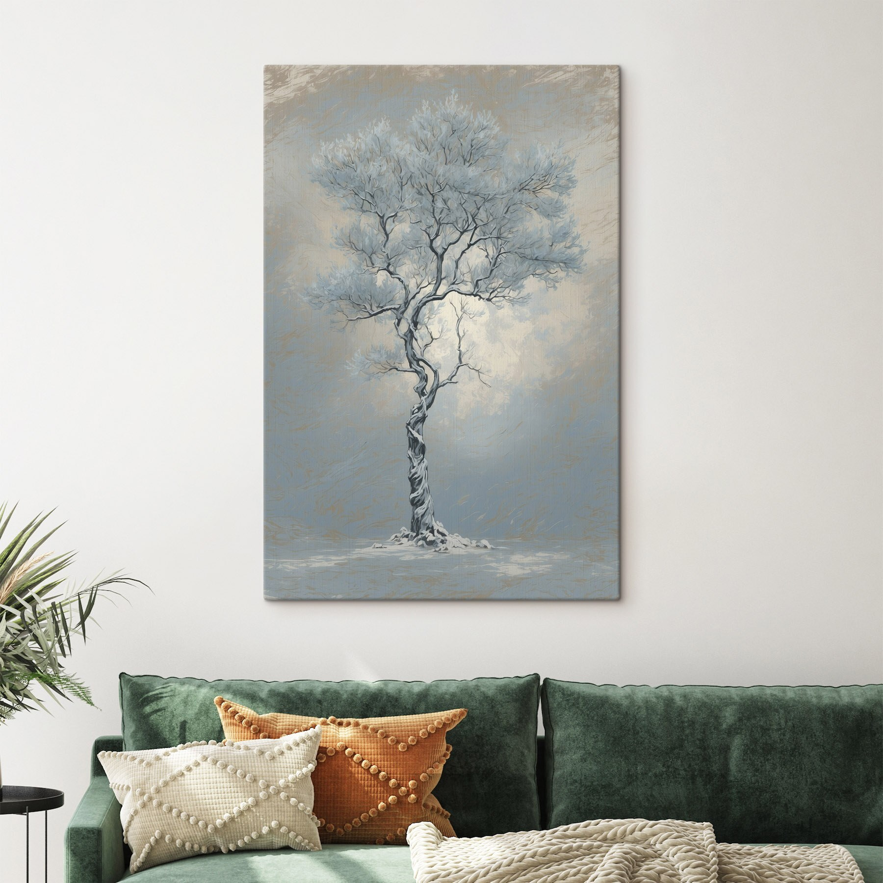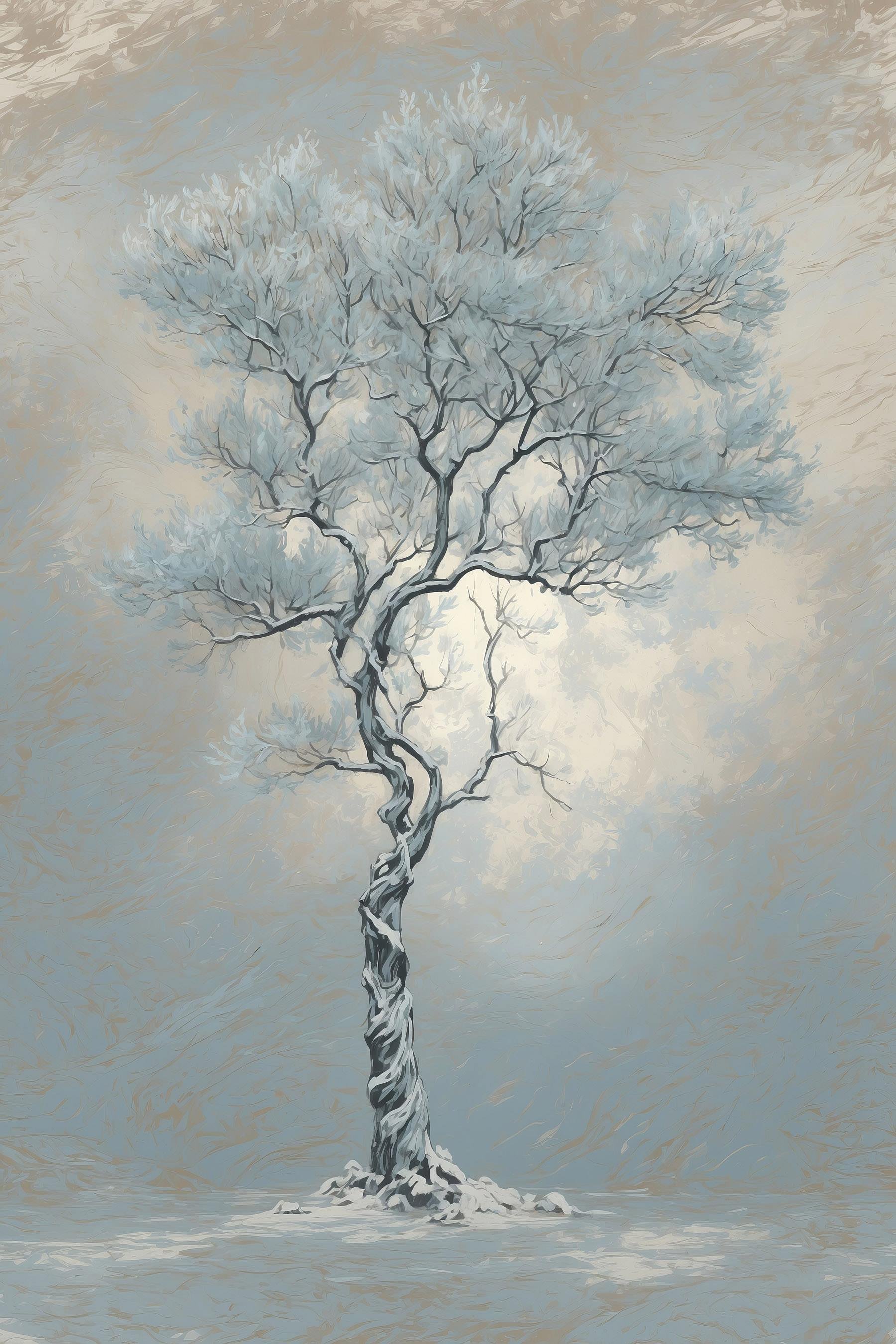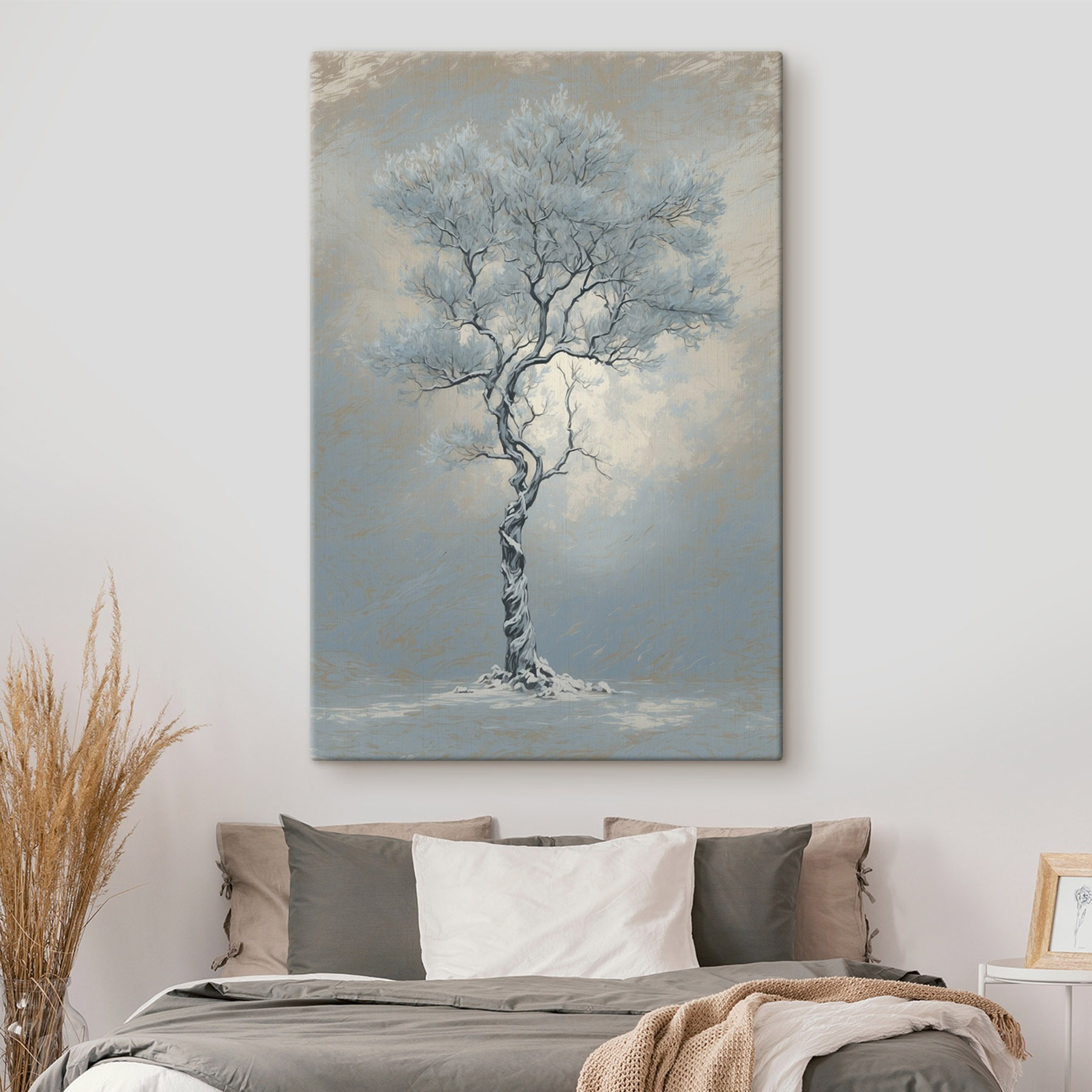 Verwandeln Sie eine Wand in ein Winterwunderland mit diesem schönen Leinwanddruck eines einsamen Baumes, der zart in Schnee gehüllt ist. Es fängt diese ruhige Kühle ein, in der die Welt draußen still und magisch wirkt. Stellen Sie sich vor, wie Sie es sich mit einem warmen Getränk gemütlich machen und auf dieses heitere Kunstwerk starren, während Gedanken an Schneeballschlachten und heißen Kakao aufkommen. Perfekt für jeden Raum, sei es ein Wohnzimmer oder eine gemütliche Nische. Mit seinen sanften Farben und seiner einladenden Ausstrahlung lädt dieses Kunstwerk zu Wärme und Besinnung ein und macht jeden Blick zu einer sanften Flucht aus der Alltagshektik.