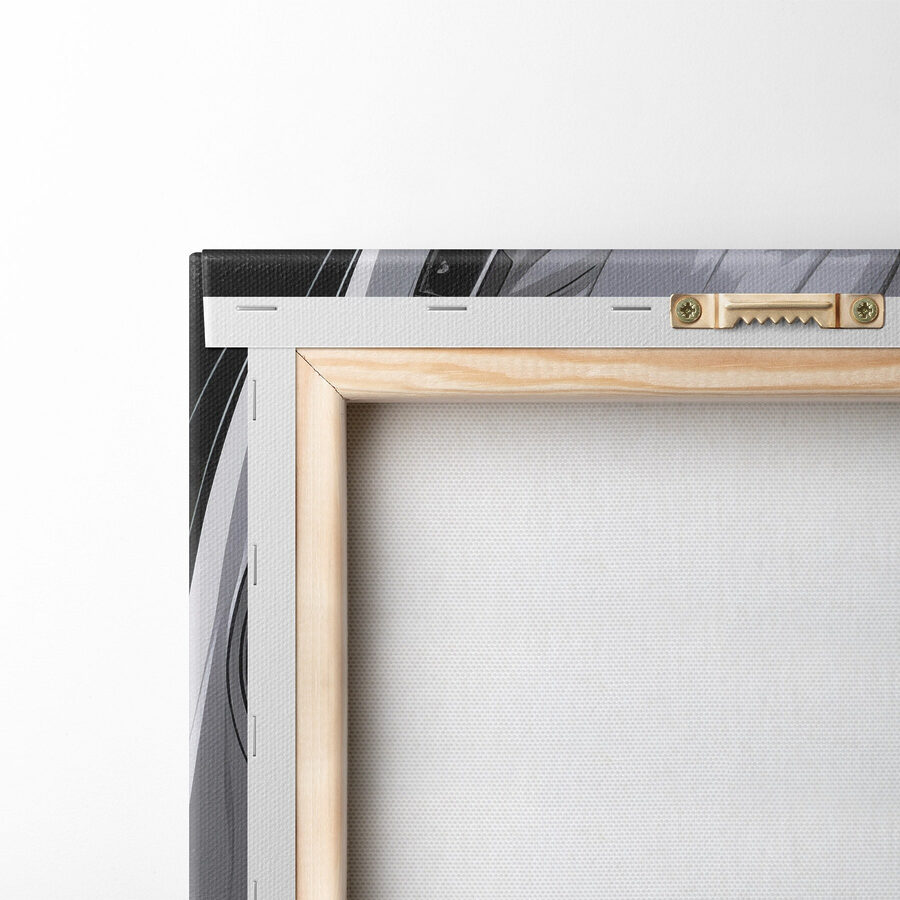 Verleihen Sie Ihrem Raum einen Hauch von Coolness mit diesem auffälligen Leinwandbild. Es zeigt eine bezaubernde Frau mit langen, wallenden blonden Haaren und Kopfhörern, die Eleganz und einen Hauch von Haltung perfekt miteinander verbindet. Stellen Sie sich vor, wie sie Ihnen über die Schulter schaut, während Sie Ihren Kaffee trinken, als ob sie all Ihre geheimen Träume mitbekommt. Das schwarz-weiße Design verleiht ihr eine zeitlose Ausstrahlung und passt in jeden Raum, vom schicken Wohnbereich bis zum kreativen Arbeitsbereich. Es ist, als hätte man ein kleines Kunstwerk, das Stil ausstrahlt, ohne nach Aufmerksamkeit zu schreien. Perfekt für alle, die ein wenig Frechheit in ihrer Einrichtung zu schätzen wissen.