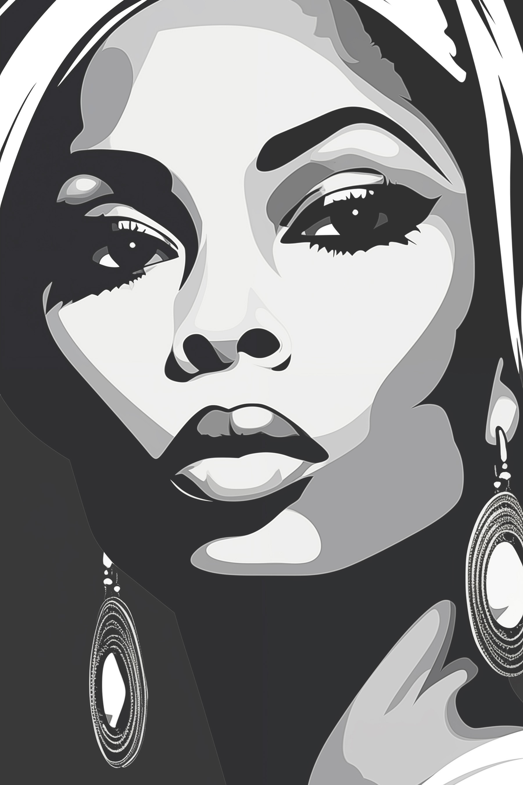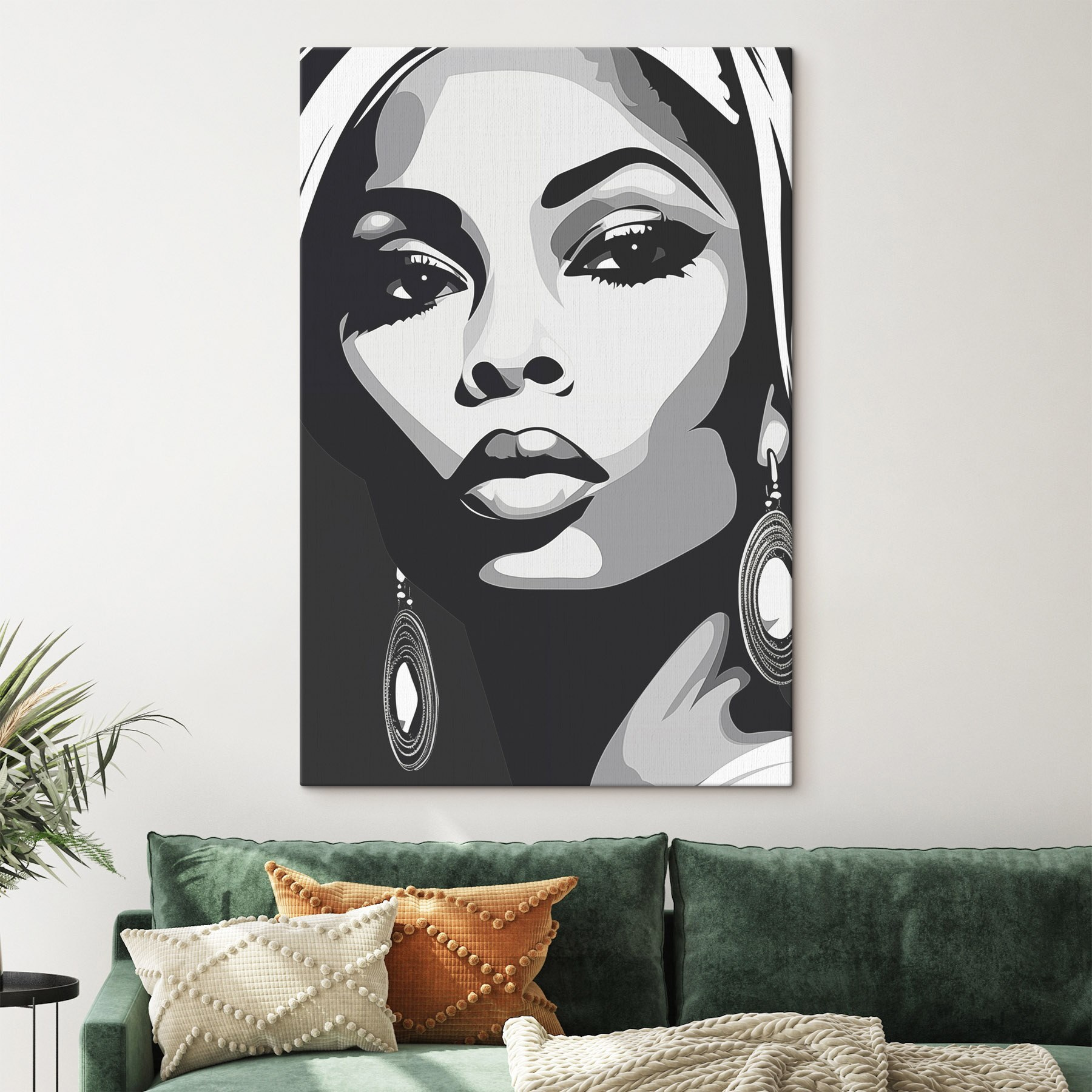 Verschönern Sie Ihren Raum mit diesem auffälligen Leinwandbild, das eine bezaubernde Frau mit großen Ohrringen zeigt. Das schwarz-weiße Design vermittelt ein Gefühl von Dramatik und Eleganz und passt mühelos in jeden Raum. Stellen Sie sich vor, Sie gehen an ihr vorbei und fangen ihren Blick ein – als würde sie darauf warten, Geheimnisse aus einer vergangenen Ära zu erzählen oder vielleicht den einen oder anderen Tagtraum zu inspirieren. Ob in einer gemütlichen Leseecke oder einem stilvollen Wohnzimmer, dieses Kunstwerk regt zu Gesprächen an. Außerdem verleiht es einen Hauch von Raffinesse, ohne viel Aufhebens zu machen. Ihre Wände werden es Ihnen danken!