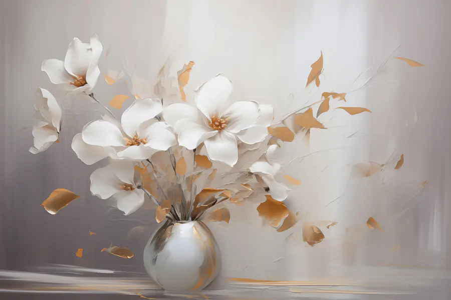 Verwandeln Sie Ihren Raum mit “Delicate Blooms in a Serene Vase”. Dieser bezaubernde Leinwanddruck bringt eine frische, luftige Atmosphäre in jeden Raum. Stellen Sie sich vor, Sie betreten Ihren Wohnbereich und werden sofort von diesen anmutigen weißen Blumen begrüßt, die sich sanft wiegen, als würden sie von einer leichten Brise geküsst. Es ist die Art von Kunstwerk, die zu Gesprächen anregt und zu Tagträumen einlädt – zum Beispiel zur Planung einer Gartenparty oder einfach zum Genießen eines ruhigen Moments mit einer Tasse Tee. Die gedämpften Farben verschmelzen wunderbar miteinander und schaffen eine ruhige Atmosphäre. Dieses Kunstwerk ist perfekt für Blumenliebhaber und alle, die einen Hauch von Natur suchen, und verleiht Ihrer Einrichtung Charme und Wärme. Wer würde das nicht wollen?