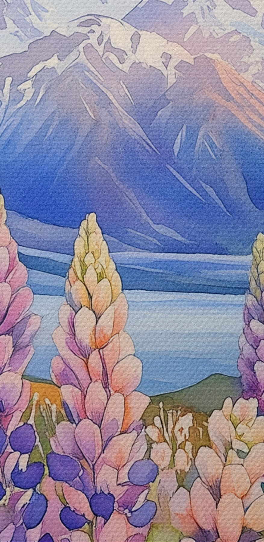 Stellen Sie sich das vor: eine atemberaubende Szene, in der leuchtende Blumen im Vordergrund tanzen, während majestätische Berge feierlich im Hintergrund stehen. Dieser Leinwanddruck fängt die Essenz der Natur ein und erfüllt jeden Raum mit Wärme und Ruhe. Stellen Sie sich vor, es würde in einem gemütlichen Wohnzimmer oder einer friedlichen Leseecke hängen; allein die Farben könnten Ihnen das Gefühl geben, einen Spaziergang durch eine sonnenbeschienene Wiese zu machen.