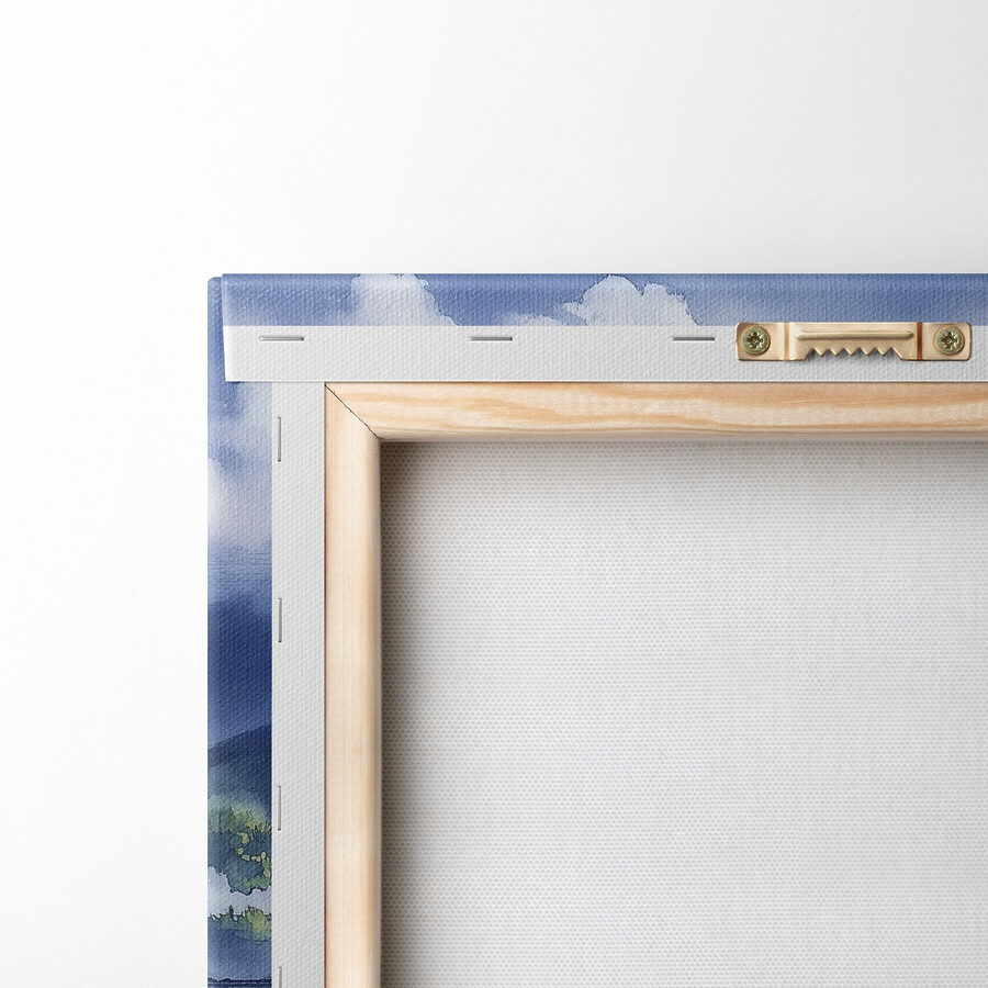 Stellen Sie sich dieses atemberaubende Aquarell eines ruhigen Sees vor, mit einer charmanten Pagode und anmutigen Seerosenblättern, die auf der Oberfläche tanzen. Es ist wie eine kleine Flucht vor dem Alltagslärm und perfekt geeignet, um jedem Raum ein Stückchen Gelassenheit zu verleihen. Stellen Sie sich vor, Sie machen es sich mit einer Tasse Tee gemütlich und lassen die friedliche Stimmung auf sich wirken. Die sanften Farbtöne und verträumten Details laden zum Träumen ein und wecken Tagträume von fernen Ländern und sanften Brisen. Diese Leinwand ist nicht nur Dekoration, sie ist ein Fenster in eine andere Welt. Ihr Raum hat ein solches Stück verdient – warum nicht auch Sie?