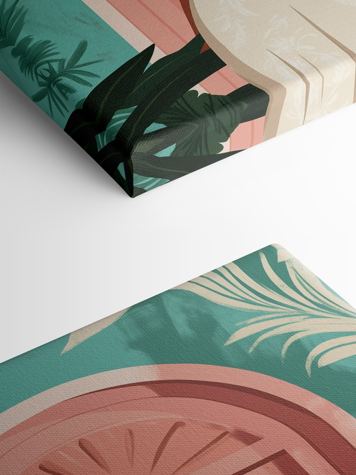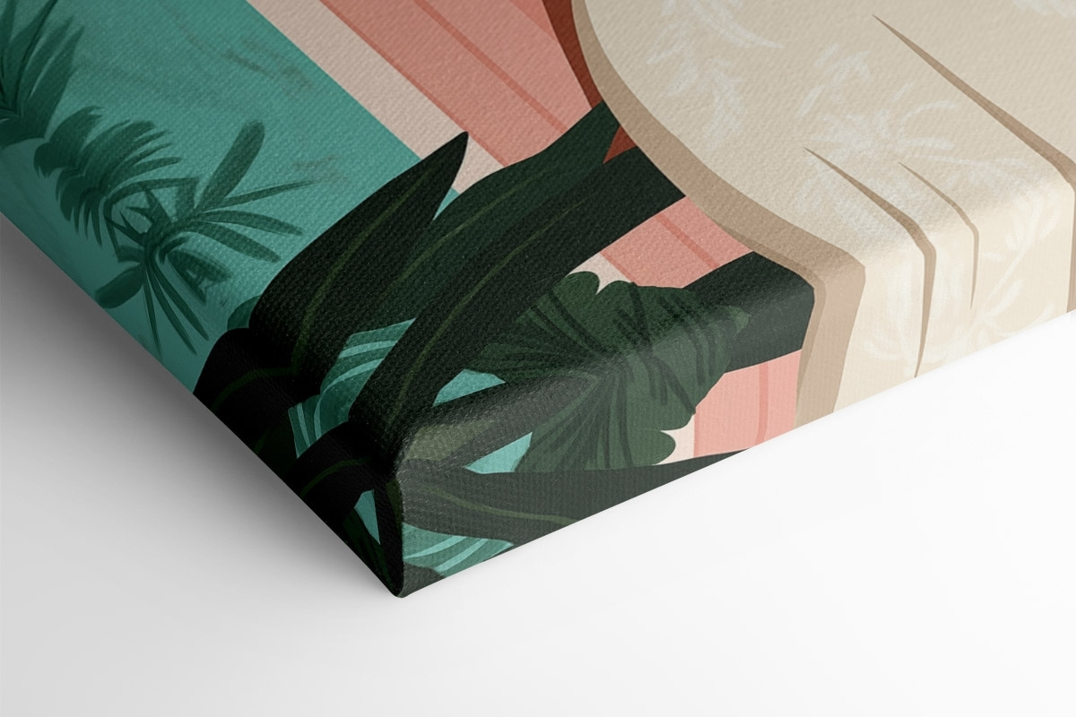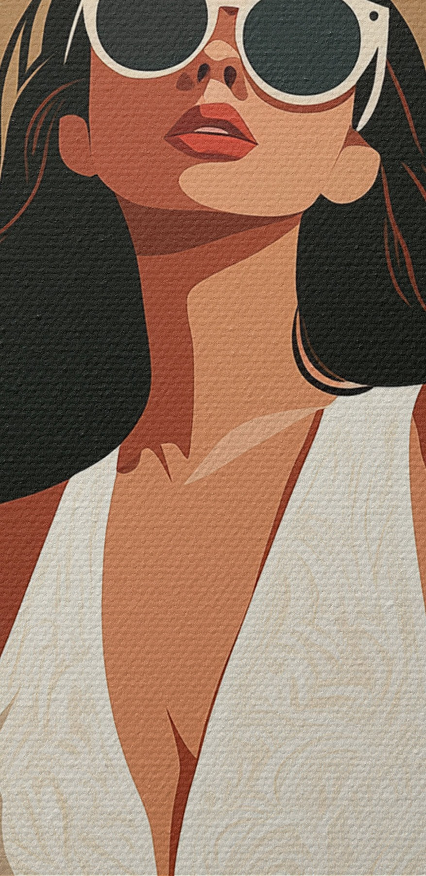 Halten Sie einen Hauch von Sommerzauber mit diesem atemberaubenden Leinwandbild fest. Stellen Sie sich einen sorglosen Tag vor, an dem Sie die Sonne genießen, während eine stilvolle Frau in einem weißen Kleid und einem schicken Hut mühelos vor einem pastellfarbenen Hintergrund steht. Es ist, als ob sie dich einlädt, sie auf ein sonniges Abenteuer zu begleiten. Die leuchtenden Farben und die verspielte Stimmung machen es zu einem perfekten Bild, um jeden Raum zu verschönern – egal, ob es sich um ein gemütliches Wohnzimmer oder ein luftiges Schlafzimmer handelt. Es erinnert an faule Nachmittage, eiskalte Getränke und Lachen. Hängen Sie es auf und lassen Sie sich jeden Tag zu tropischen Träumen inspirieren!