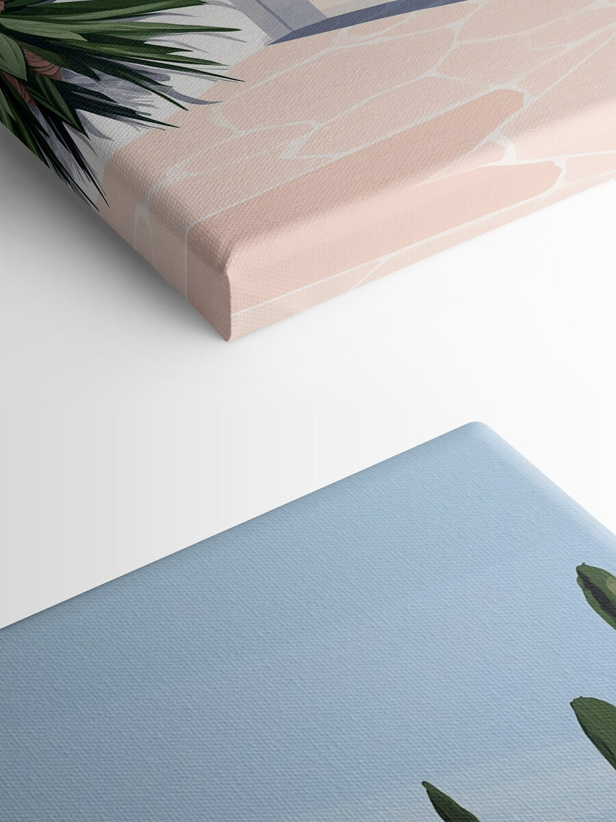 Stellen Sie sich vor, Sie kommen an einen sonnigen Ort, wo die Luft frisch und ruhig ist. Dieser Leinwanddruck fängt diese Stimmung perfekt ein, mit seinem markanten weißen Gebäude und den zartrosa Bögen – die perfekte Kulisse für einen verträumten Nachmittag. Die hohen Bäume verleihen dem Bild einen Hauch von Natur und laden zu einem Gefühl der Ruhe ein. Hängen Sie es im Wohnzimmer oder in einer gemütlichen Ecke auf, und plötzlich fühlt sich jeder Tag wie ein Mini-Urlaub an. Ihre Freunde werden Sie vielleicht fragen, ob Sie verreist sind, und Sie können lächeln und sagen: “Nein, ich lebe einfach mein bestes Leben zu Hause!” Kunst verwandelt den Raum und schafft eine warme, einladende Atmosphäre.