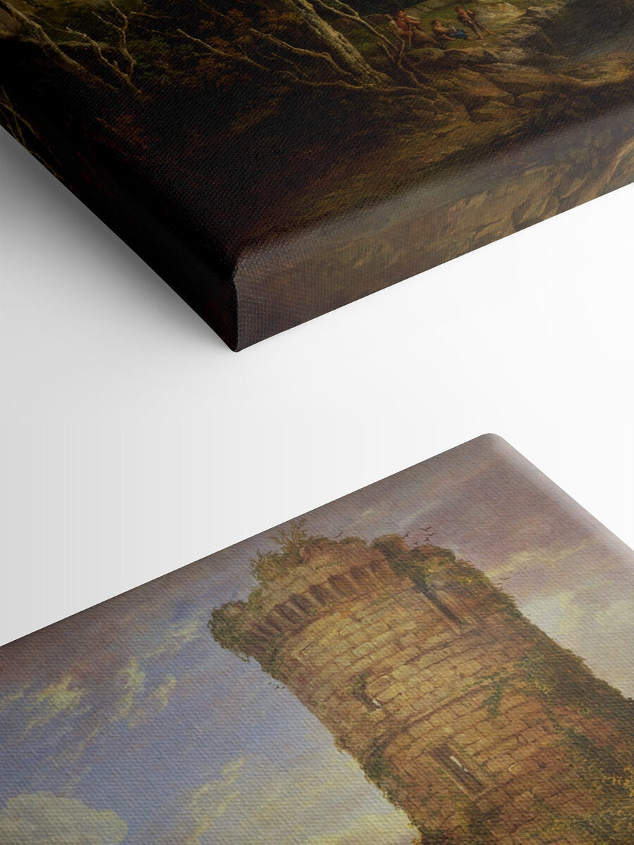 Mit diesem atemberaubenden Leinwanddruck eines Schlossturms inmitten von üppigen Bäumen und einem sanften Bachlauf können Sie sich in eine heitere Welt zurückziehen. Stellen Sie sich vor, wie Sie Ihre Nachmittage vor diesem Bild verbringen und sich wie eine Figur in einem Märchenbuch fühlen. Die sanften Farben erinnern an eine friedliche Dämmerung, die Wärme und Ruhe in jeden Raum bringt. Stellen Sie sich gemütliche Gespräche vor, die unter seinem wachsamen Blick stattfinden, oder vielleicht eine launige Teeparty mit Freunden. Es ist, als hätten Sie ein Stück Märchen direkt an Ihrer Wand. Dieses Kunstwerk verschönert nicht nur den Raum, sondern regt auch die Fantasie an und erinnert jeden, der es sieht, daran, dass Magie auch im Alltag zu finden ist.
