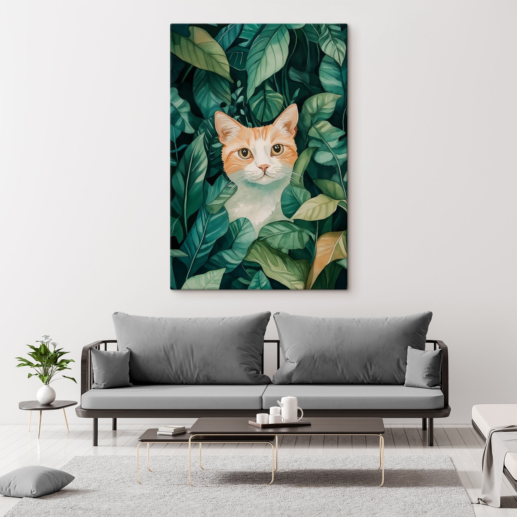 Stellen Sie sich eine neugierige Katze vor, die aus einem gemütlichen Blätterdschungel herausschaut und die Augenbrauen herausfordernd hochzieht. Dieser Leinwanddruck “Cat in the Leaves” bringt einen Hauch von Laune in jeden Raum. Das grüne Blattwerk bietet einen erfrischenden Hauch von Natur und schafft eine lebendige Atmosphäre für Ihr Wohnzimmer, Ihr Schlafzimmer oder sogar für die Ecke, die Sie immer wieder verschönern wollen. Es ist, als hätte man einen kleinen Begleiter aus der Natur an der Wand – bereit, ein Lächeln zu zaubern und Gespräche anzuregen. Egal, ob Sie sich nach einem langen Tag entspannen oder bei einem gemütlichen Beisammensein Freude verbreiten wollen, dieser Druck ist wie eine warme Umarmung. Wer würde seinen Raum nicht gerne mit einem so reizenden Katzenfreund teilen?