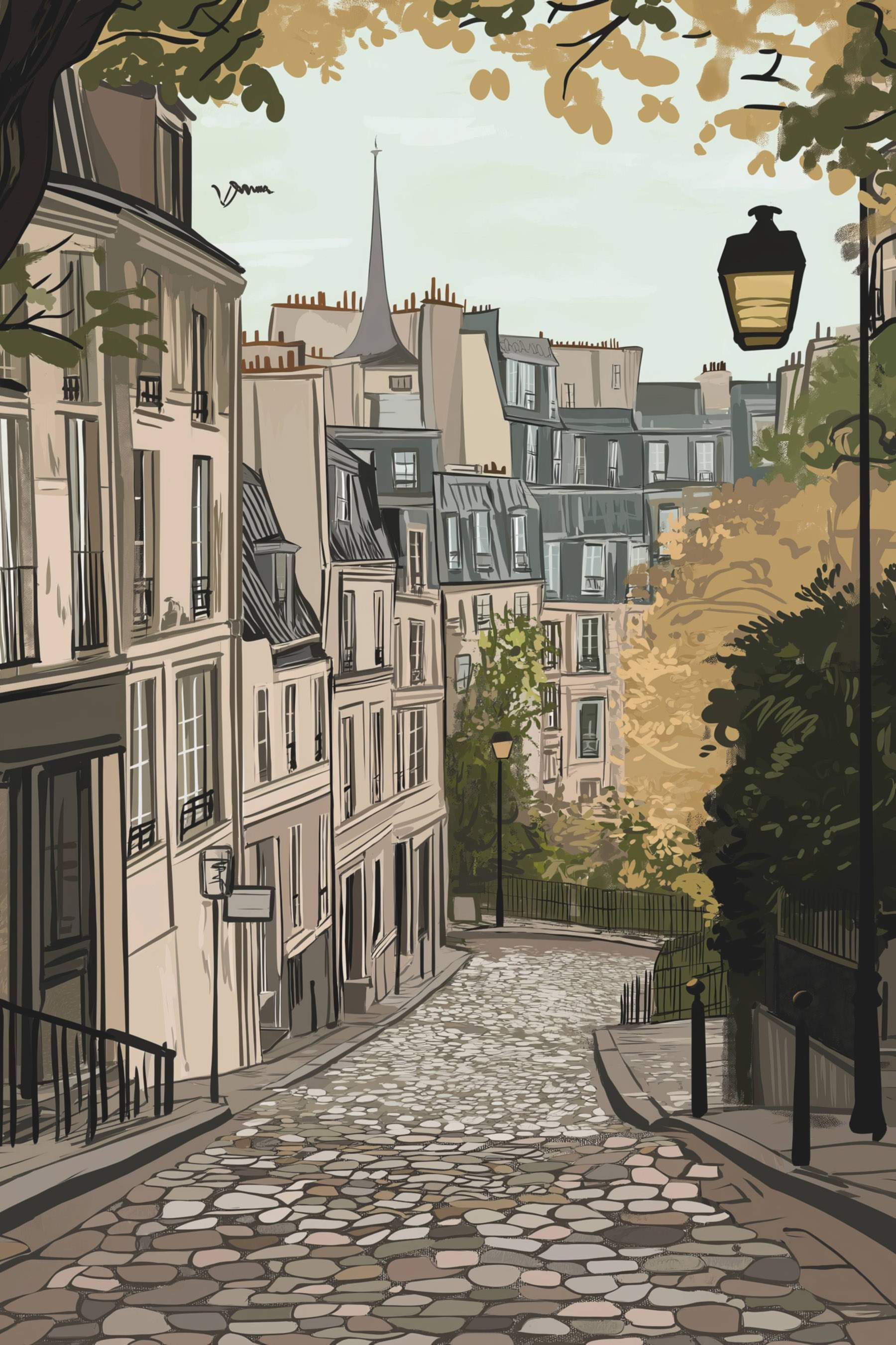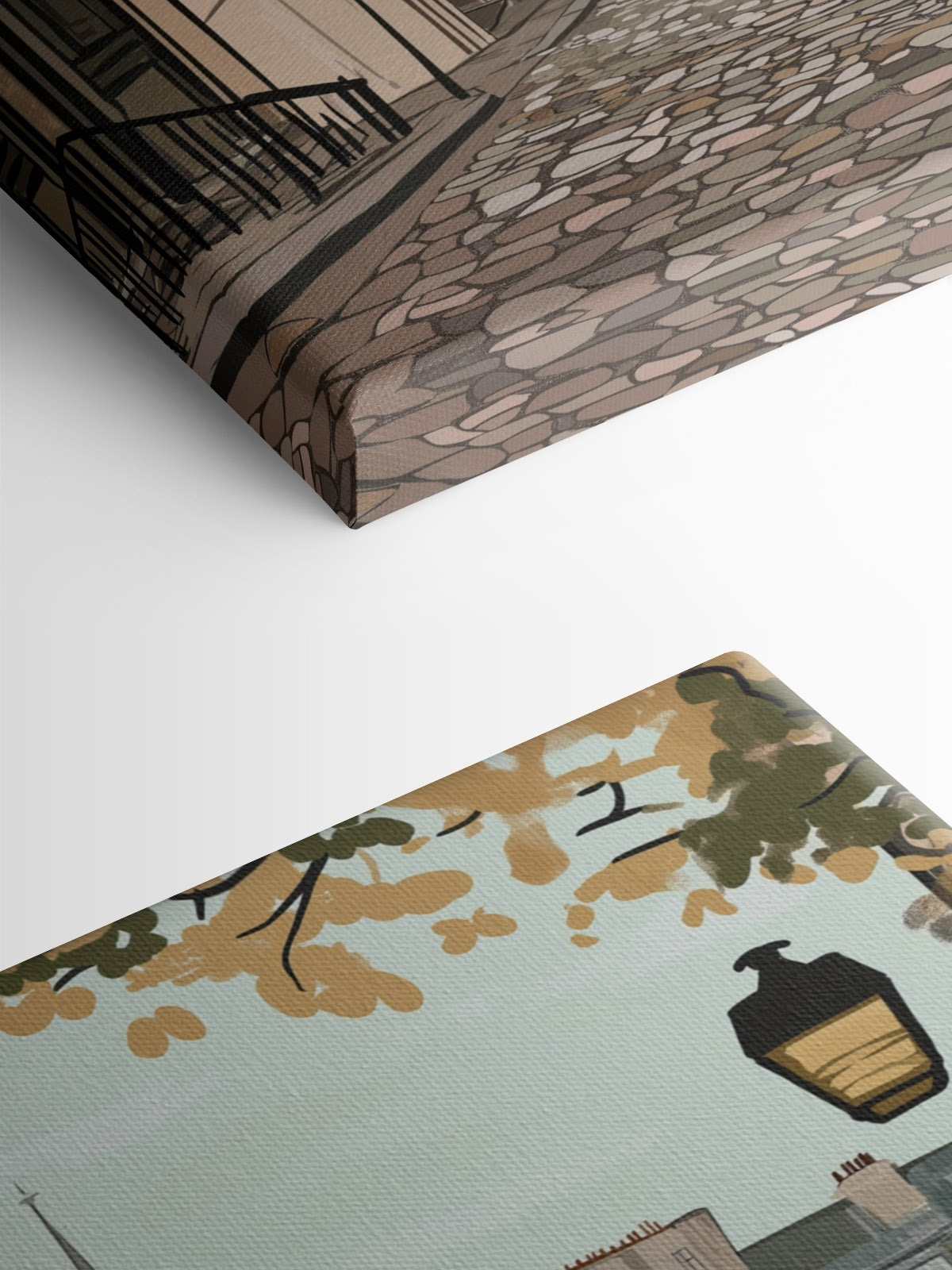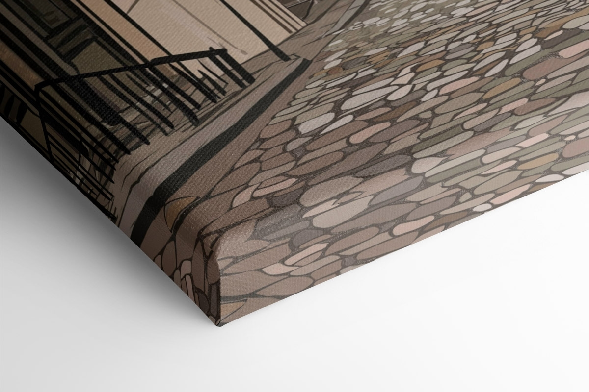 Treten Sie ein in eine Welt, in der Kopfsteinpflaster Geschichten aus der Vergangenheit flüstert. Diese charmante Straßenszene mit ihren malerischen Gebäuden und einladenden Laternenpfählen verleiht jedem Raum eine warme Note. Stellen Sie sich vor, wie Sie es sich mit einem guten Buch gemütlich machen und sich in den sanften Schein der Straßenlaternen versetzen lassen, als wären Sie in einer skurrilen europäischen Gasse. Die dezenten Farbtöne passen gut zu Ihrer Einrichtung und sorgen für Gemütlichkeit und Stil. Perfekt für jeden, der gerne von fernen Orten träumt, ist dieses Wandbild eine wunderbare Erinnerung daran, dass das Abenteuer direkt vor Ihrer Tür wartet.