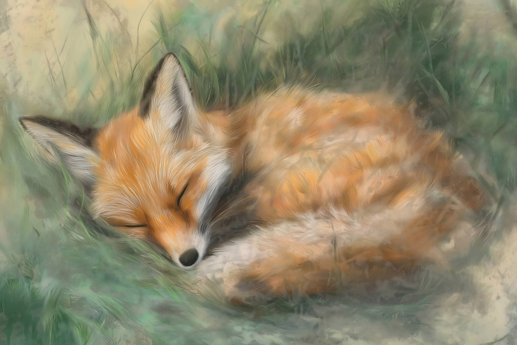 Stellen Sie sich eine gemütliche Ecke Ihres Zuhauses vor, die durch eine entzückende Szene eines friedlich im Gras schlafenden Fuchses verwandelt wird. Dieser Leinwanddruck fängt diesen heiteren Moment ein und bringt ein Gefühl von Ruhe und Laune in jeden Raum. Stellen Sie sich das Bild in einem Wohnzimmer oder Kinderzimmer vor, wo Ihre Gäste bei diesem Anblick einfach nur lächeln können.