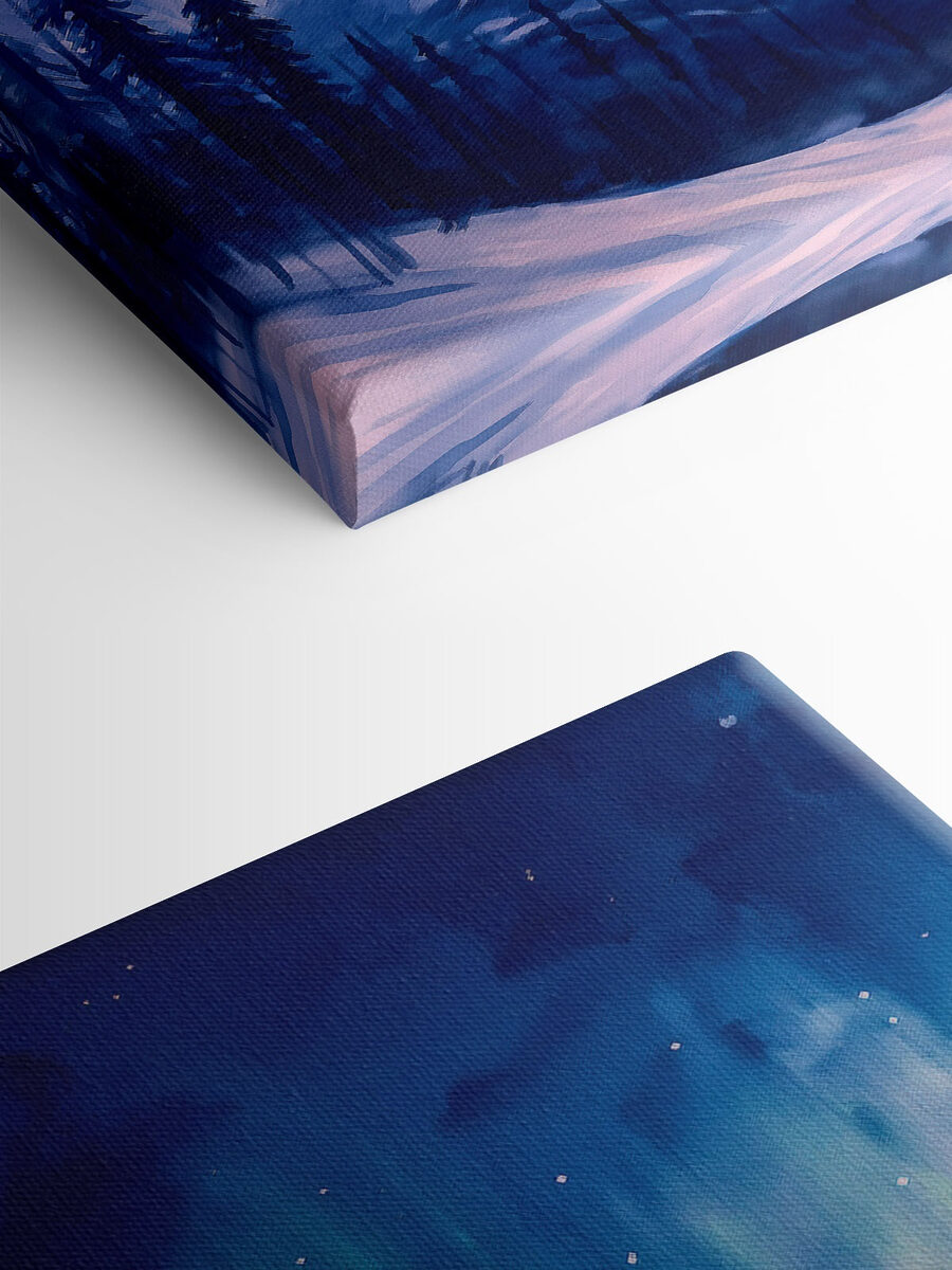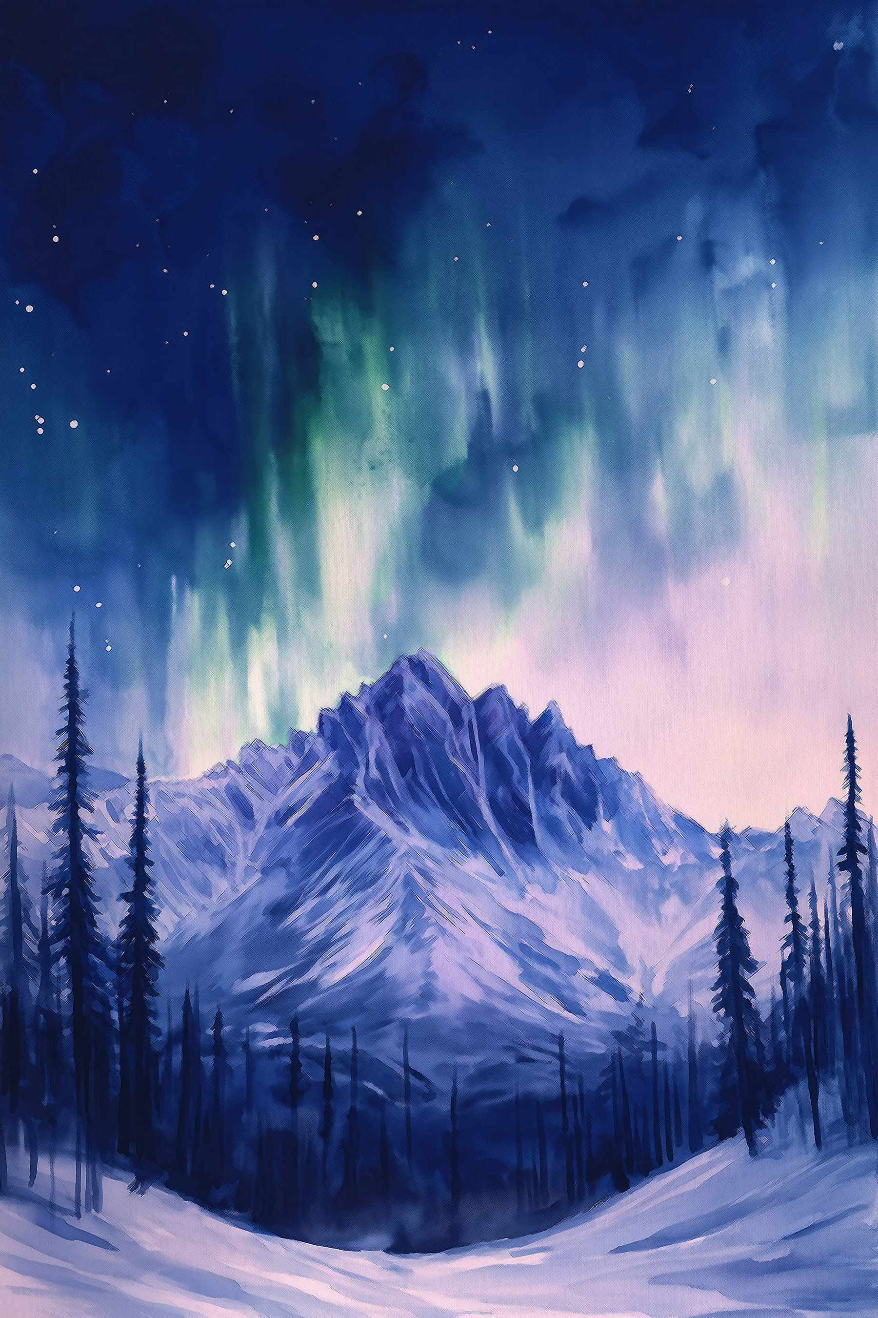 Stellen Sie sich vor, es ist ein gemütlicher Abend, vielleicht haben Sie eine Tasse Chai in der Hand, und plötzlich werden Sie in eine magische Berglandschaft unter einem tanzenden Polarlicht versetzt. Dieser Leinwanddruck tut genau das. Die leuchtenden Blau- und Grüntöne wirbeln über schneebedeckten Gipfeln, während die Bäume wie stille Wächter aufrecht stehen. Es ist perfekt für jeden, der davon träumt, in die Natur zu entfliehen, und sei es nur von der Couch aus. Stellen Sie sich vor, wie es jede Wand aufpeppt, Gespräche anregt oder einfach nur eine friedliche Kulisse für nachdenkliche Momente bietet. Die Schönheit der Natur, in Flaschen abgefüllt, nur für Sie.