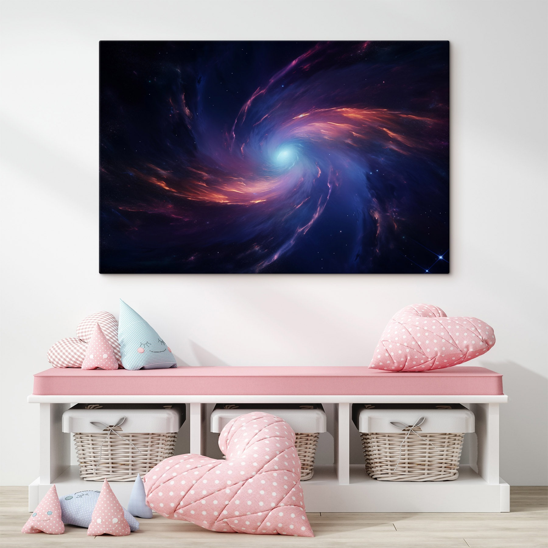 Verwandeln Sie eine schlichte Wand in ein kosmisches Wunderland mit diesem leuchtenden Leinwanddruck. Mit dem Titel “Colorful Swirl of Light in Space” (Bunte Lichtwirbel im Weltraum) ist es, als würde man ein Stück des Universums einfangen und mit nach Hause nehmen. Stellen Sie sich die wirbelnden Farben vor und lassen Sie sich in eine Galaxie entführen, in der alles möglich ist. Perfekt, um Gespräche auf einer Dinnerparty anzuregen oder sich einfach beim Kaffee in Gedanken zu verlieren. Ob in einer gemütlichen Leseecke oder im heimischen Büro – dieser Druck lässt das Alltägliche außergewöhnlich erscheinen. Wer träumt schon vom Weltraum?