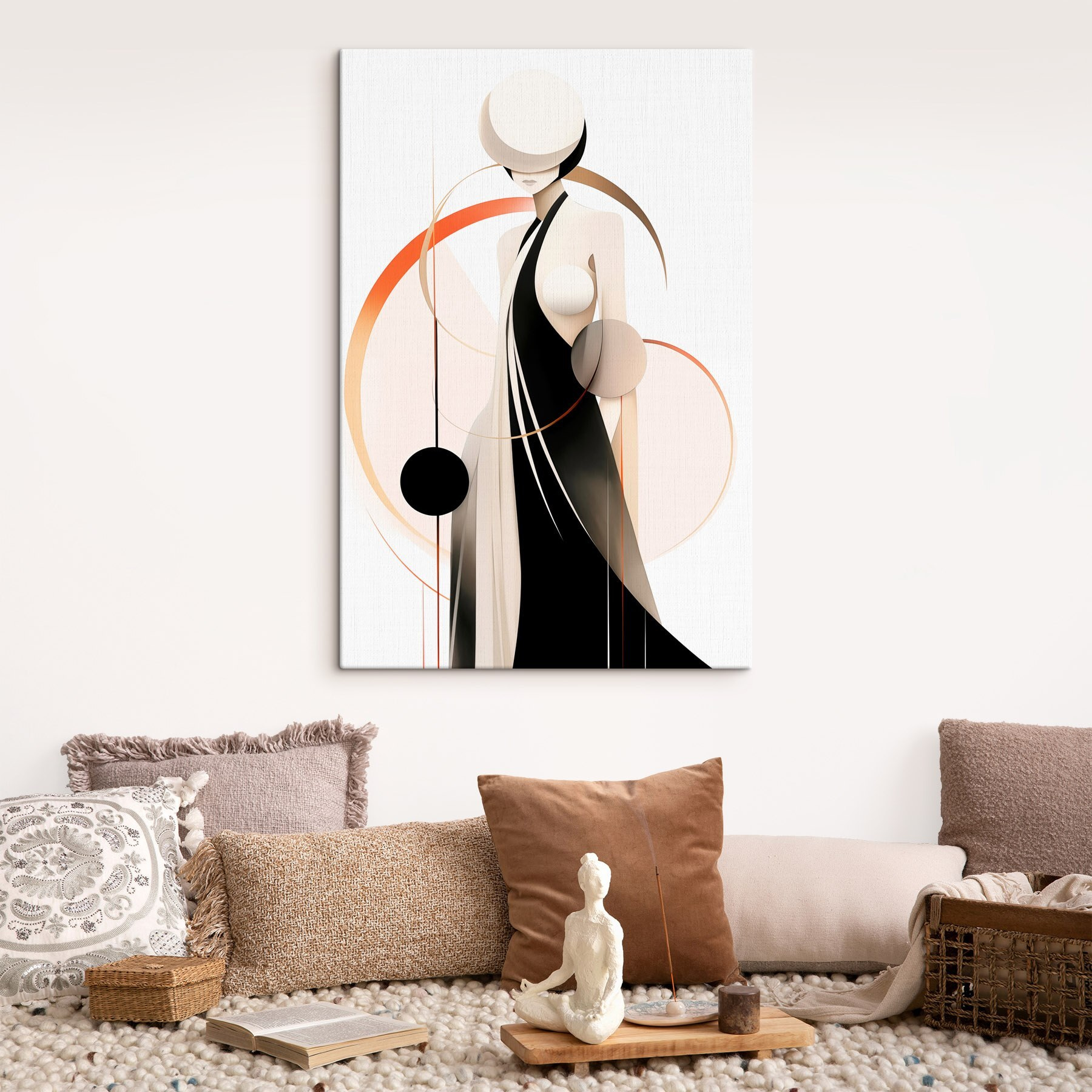 Tauchen Sie ein in die Welt der Eleganz mit diesem atemberaubenden Leinwandbild, das eine geheimnisvolle Frau in einem schwarzen Kleid zeigt. Das minimalistische Design hebt sich von einem rein weißen Hintergrund ab und verleiht ihm eine fast traumhafte Qualität. Stellen Sie sich das Bild in einem gemütlichen Wohnzimmer oder einem schicken Büro vor, wo es zu Komplimenten einlädt und zu Gesprächen anregt. Die Mischung aus abstrakten Formen verleiht ihm einen Hauch von Laune und macht es zu mehr als nur Wandkunst – es ist ein Stimmungsaufheller. Stellen Sie sich vor, wie Ihre Gäste das Bild betrachten und darüber nachdenken, welche Geschichten sich hinter diesem unergründlichen Ausdruck verbergen. Perfekt für Fans moderner Kunst, die einen Hauch von Intrige zu schätzen wissen!