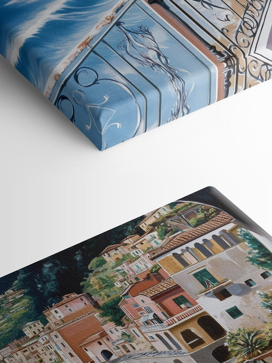 Stellen Sie sich vor, Sie betreten eine Szene, in der das Meer auf den Himmel trifft und sich das gemütliche Stadtleben direkt unter Ihrem Balkon entfaltet. Dieser Leinwanddruck fängt diesen magischen Moment ein und lädt Sie ein, die salzige Luft einzuatmen und die sanfte Meeresbrise zu spüren. Stellen Sie sich faule Nachmittage vor, an denen Sie Limonade schlürfen und den Wellen beim Tanzen am Ufer zusehen, während sich bunte Häuser an den Hang schmiegen. Es eignet sich perfekt, um einen Wohnraum zu verschönern oder ein Schlafzimmer in Urlaubsstimmung zu versetzen. Jeder Blick auf dieses Kunstwerk könnte Sie einfach nur in die Ferne entführen und gewöhnliche Tage in kleine Urlaube verwandeln. Gemütlicher kann Dekoration nicht sein!