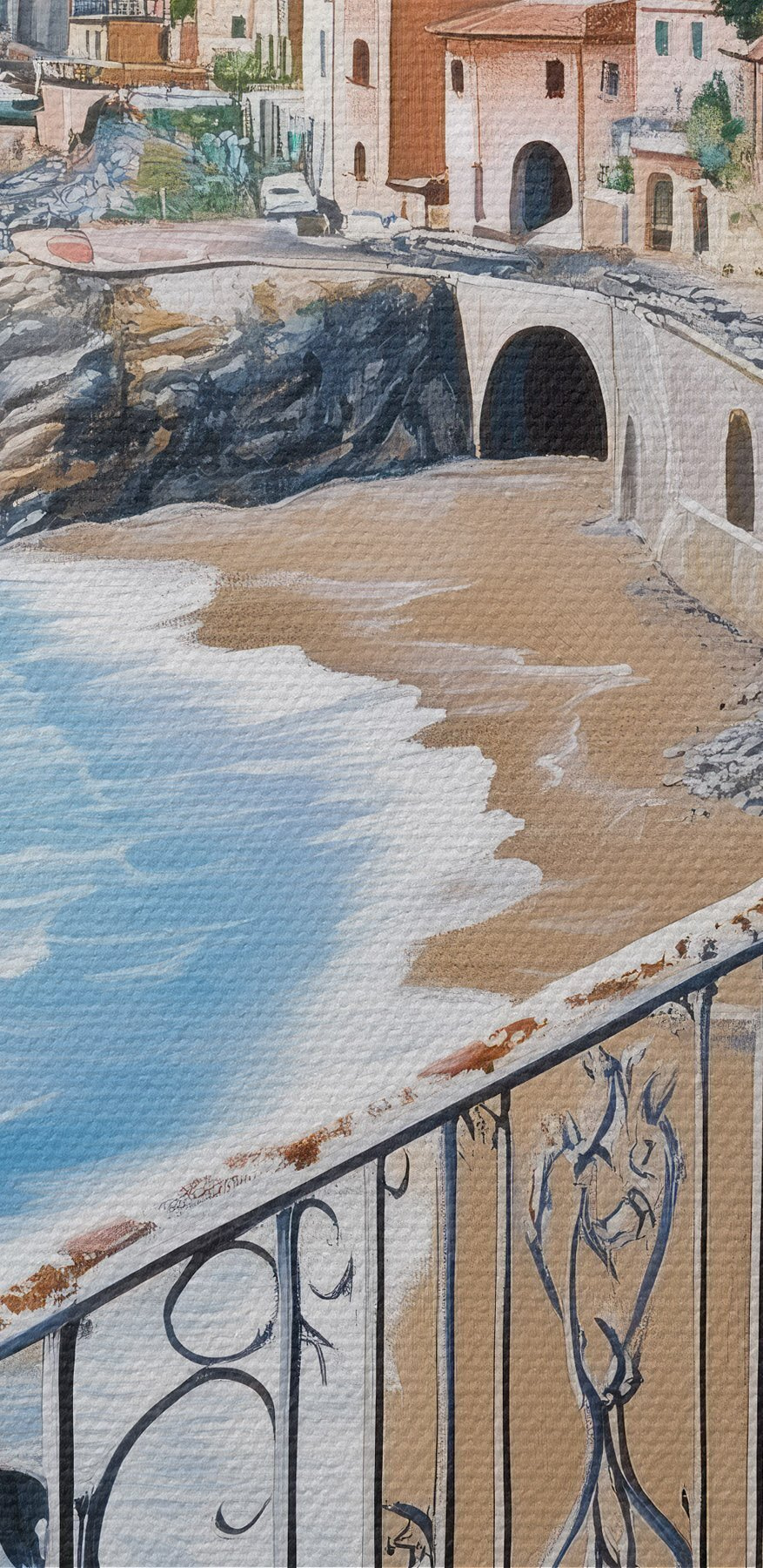 Stellen Sie sich vor, Sie betreten eine Szene, in der das Meer auf den Himmel trifft und sich das gemütliche Stadtleben direkt unter Ihrem Balkon entfaltet. Dieser Leinwanddruck fängt diesen magischen Moment ein und lädt Sie ein, die salzige Luft einzuatmen und die sanfte Meeresbrise zu spüren. Stellen Sie sich faule Nachmittage vor, an denen Sie Limonade schlürfen und den Wellen beim Tanzen am Ufer zusehen, während sich bunte Häuser an den Hang schmiegen. Es eignet sich perfekt, um einen Wohnraum zu verschönern oder ein Schlafzimmer in Urlaubsstimmung zu versetzen. Jeder Blick auf dieses Kunstwerk könnte Sie einfach nur in die Ferne entführen und gewöhnliche Tage in kleine Urlaube verwandeln. Gemütlicher kann Dekoration nicht sein!