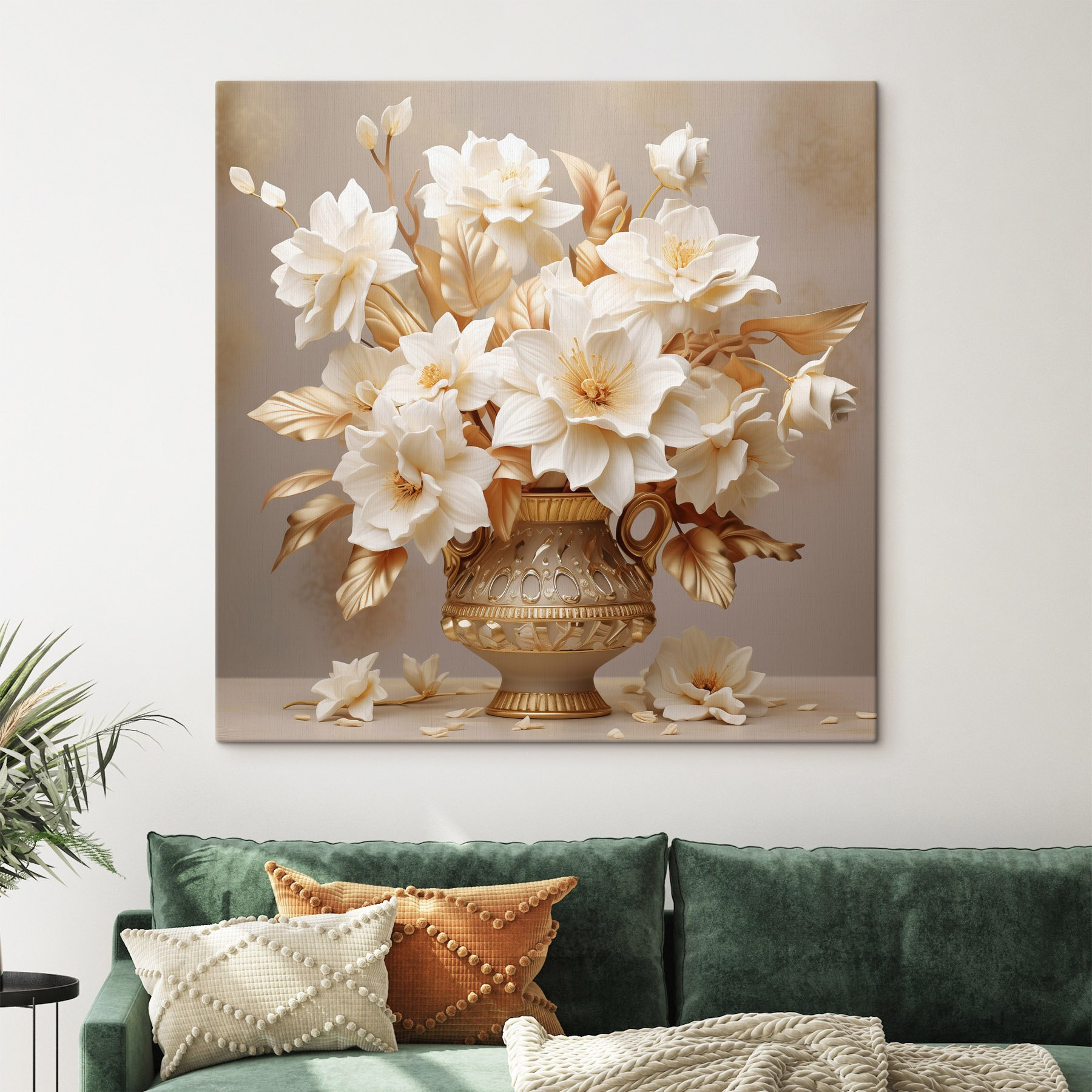 Verschönern Sie jeden Raum mit diesem atemberaubenden Leinwandbild, das eine schöne Vase mit weißen Blumen zeigt. Es ist wie ein frischer Wind für Ihre Wände, der einen Hauch von Natur nach drinnen bringt, ohne dass Sie sich um das Gießen kümmern müssen! Stellen Sie sich einen gemütlichen Morgen vor, an dem das Sonnenlicht durch das Fenster fällt und die sanfte Eleganz dieser Blüten eine heitere Stimmung verbreitet, die alles ein wenig heller erscheinen lässt. Perfekt für das Wohnzimmer oder die leere Wand im Flur, kann dieses Stück Freude und vielleicht sogar ein paar Komplimente hervorrufen. Es ist Kunst, die nicht nur herumhängt, sondern den Raum wirklich belebt.