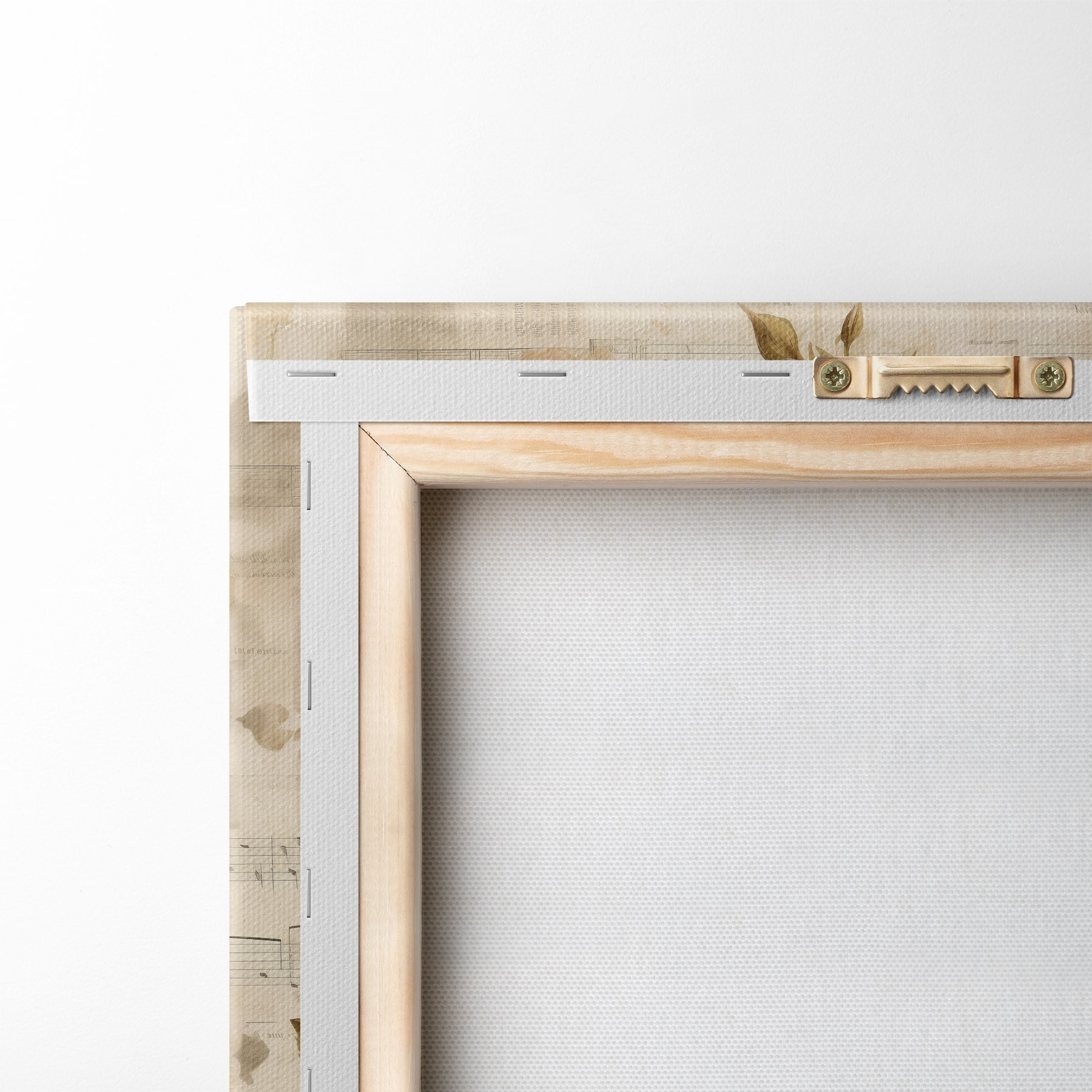 Stellen Sie sich vor, Sie verschönern Ihren Raum mit diesem atemberaubenden Leinwanddruck, auf dem zarte Blumen anmutig über Notenblätter tanzen. Es ist wie eine kleine Gartenparty für Ihre Wände, die überall Charme und Laune versprüht. Die sanften Farben der blühenden Blumen laden zu Wärme und Ruhe ein und flüstern denjenigen, die einen Blick darauf erhaschen, süße Botschaften zu. Dieses Kunstwerk eignet sich perfekt für eine gemütliche Leseecke oder eine kahle Wand, die um Aufmerksamkeit bettelt, und fühlt sich an wie eine sanfte Umarmung. Jeder Blick könnte eine Erinnerung oder einen Tagtraum auslösen, so dass es die Art von Dekoration ist, die tröstlich und inspirierend zugleich wirkt. Wer hätte gedacht, dass Blumen und Musik so schön zusammen aussehen können?