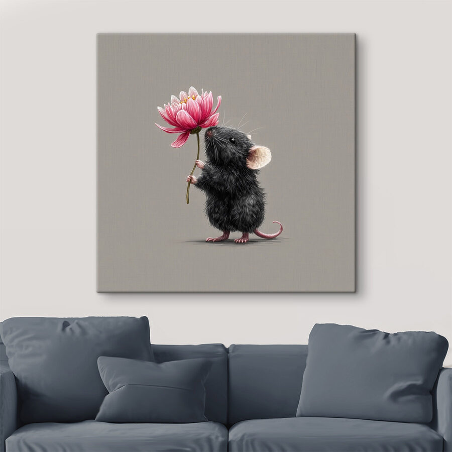 Lernen Sie den charmanten Leinwanddruck kennen, der eine niedliche Maus zeigt, die nach einer leuchtenden Blume greift. Dieses schrullige Stück verleiht jedem Raum einen Hauch von Laune. Egal, ob es eine gemütliche Ecke zum Lächeln bringt oder ein Kinderzimmer verschönert, sein verspieltes Design sorgt für Freude. Stellen Sie sich vor, Sie sitzen in Ihrem Wohnzimmer und blicken auf diesen kleinen Kerl, der seine Blume wie einen stolzen Strauß hält. Es ist eine fröhliche Erinnerung daran, dass Schönheit auch von den unwahrscheinlichsten Orten kommen kann. Perfekt für Tierliebhaber oder alle, die eine einzigartige Dekoration suchen. Es ist mehr als nur Kunst – es ist ein Gesprächsanlass!