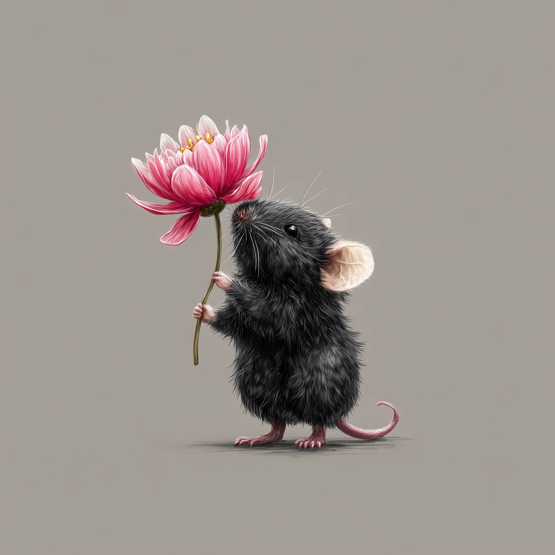 Lernen Sie den charmanten Leinwanddruck kennen, der eine niedliche Maus zeigt, die nach einer leuchtenden Blume greift. Dieses schrullige Stück verleiht jedem Raum einen Hauch von Laune. Egal, ob es eine gemütliche Ecke zum Lächeln bringt oder ein Kinderzimmer verschönert, sein verspieltes Design sorgt für Freude. Stellen Sie sich vor, Sie sitzen in Ihrem Wohnzimmer und blicken auf diesen kleinen Kerl, der seine Blume wie einen stolzen Strauß hält. Es ist eine fröhliche Erinnerung daran, dass Schönheit auch von den unwahrscheinlichsten Orten kommen kann. Perfekt für Tierliebhaber oder alle, die eine einzigartige Dekoration suchen. Es ist mehr als nur Kunst – es ist ein Gesprächsanlass!