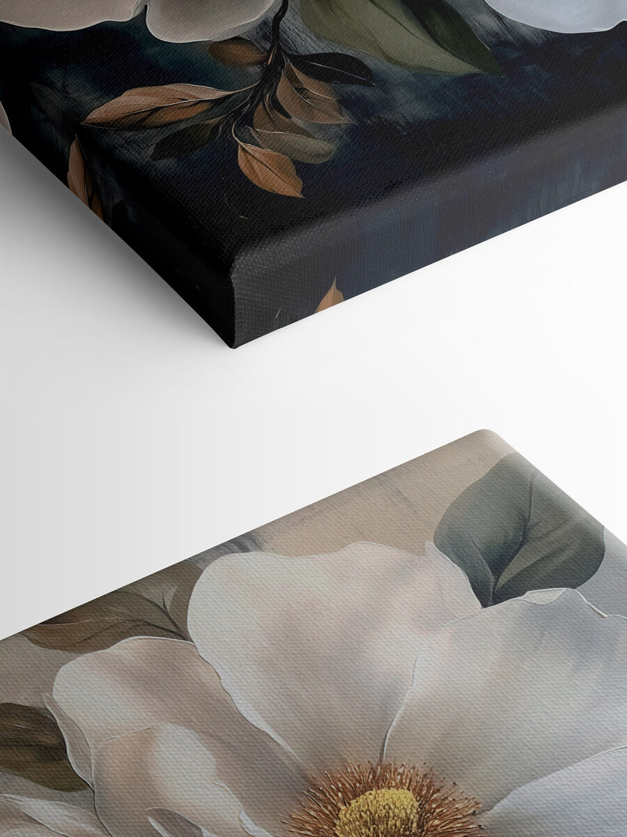 Dieser atemberaubende Leinwanddruck mit einem Strauß weißer Blumen bringt einen Hauch von frischem Wind in Ihr Zuhause. Die sanften Farbtöne und filigranen Details wirken wie ein skurriler Gartenbesuch direkt in Ihrem Wohnzimmer. Stellen Sie es sich über einer gemütlichen Couch vor, die zu Gesprächen und einem Lächeln anregt. Stellen Sie sich vor, wie Sie an Ihrem Morgenkaffee nippen, während sich die Blüten sanft wiegen und zu einem heiteren Moment einladen. Perfekt für alle, die sich nach einem Hauch von Natur sehnen, verleiht dieses Stück Charme, ohne jemals einen Tropfen Wasser zu benötigen.