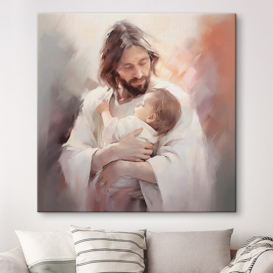 Dieser Leinwanddruck fängt eine wahrhaft herzerwärmende Szene ein – ein Mann, der ein Baby im Arm hält und ein Gefühl von Frieden und Zärtlichkeit ausstrahlt. Stellen Sie sich vor, wie dieses Kunstwerk eine gemütliche Ecke Ihres Wohnzimmers aufhellt oder sogar einen Hauch von Ruhe in ein Kinderzimmer bringt. Die sanften, verträumten Farben ziehen einen in ihren Bann, so dass es sich fast wie eine sanfte Umarmung anfühlt. Es ist nicht nur eine Dekoration, sondern lädt zu warmen Gedanken und ruhigen Momenten ein. Außerdem ist es ein perfekter Gesprächsanlass. Freunde werden innehalten, lächeln und seine Schönheit schätzen. Dieses Stück ist wie eine kleine Erinnerung an Liebe und Hoffnung, zeitlos und universell. Perfekt, um diese guten Schwingungen zu Hause zu fördern.