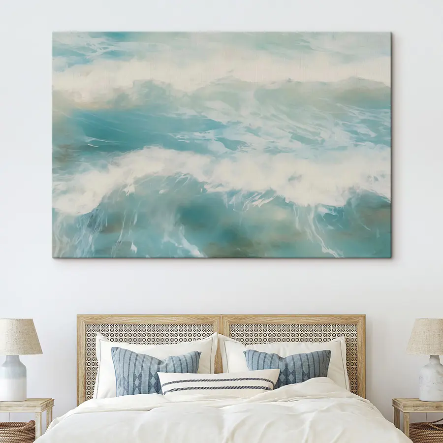 Tauchen Sie ein in die beruhigenden Schwingungen von “Sanfte Wellen tanzen auf der Oberfläche”. Dieser Leinwanddruck fängt die sanfte, rhythmische Bewegung des Wassers ein und lässt Sie sofort an einen friedlichen Strand flüchten. Stellen Sie sich vor, Sie machen es sich in Ihrem Wohnzimmer gemütlich und lassen die beruhigenden Blautöne und das sanfte Weiß wie eine kühle Brise über Sie hinwegspülen. Es ist, als hätte man einen Mini-Urlaub direkt an der Wand. Es eignet sich perfekt, um einen Hauch von Natur in jeden Raum zu bringen, und lädt zu entspannten Nachmittagen und Tagträumen von Spaziergängen am Meer ein. Und vielleicht inspiriert es ja auch zu einem spontanen Strandausflug – wer braucht nicht eine kleine Erinnerung an die Entspannung?
