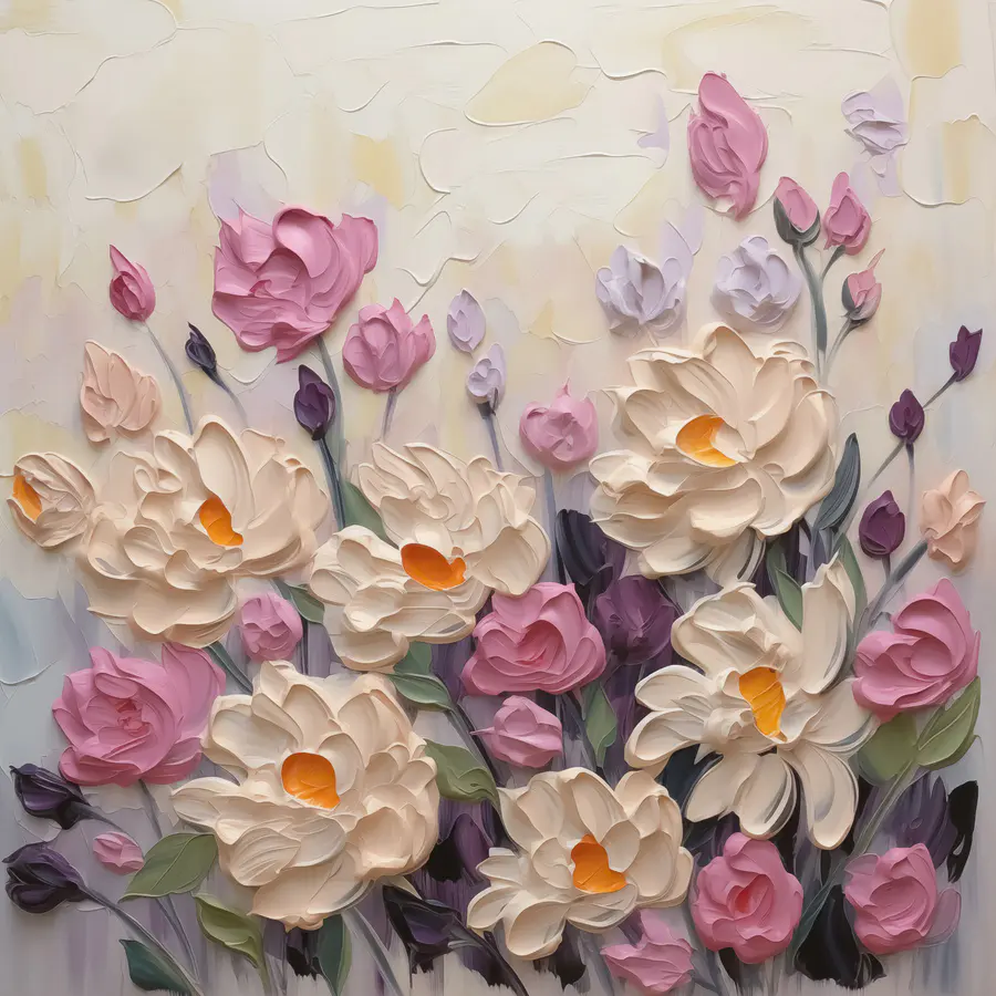 Verschönern Sie jeden Raum mit diesem atemberaubenden Leinwanddruck von Blumen und Blättern. Es ist, als würde man sich einen frischen Garten ins Haus holen, ohne dass man sich um das Gießen oder lästige Insekten kümmern muss. Die wunderschönen Blüten sprühen vor Farbe und Energie und bringen den Charme der Natur direkt an Ihre Wände. Stellen Sie sich vor, Sie schlürfen einen Kaffee, während dieses farbenfrohe Werk Ihre Gedanken anregt – vielleicht regt es ja den einen oder anderen Tagtraum an. Es passt perfekt in eine gemütliche Ecke oder sogar in einen belebten Flur und wird Ihre Gäste in Erstaunen versetzen. Wer würde nicht über ein wenig blumige Fröhlichkeit lächeln? Es ist nicht nur Dekoration, sondern auch ein Stimmungsaufheller!