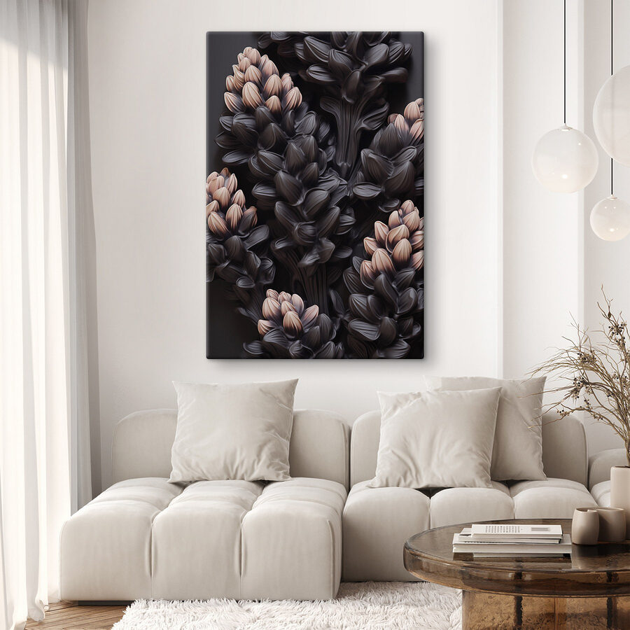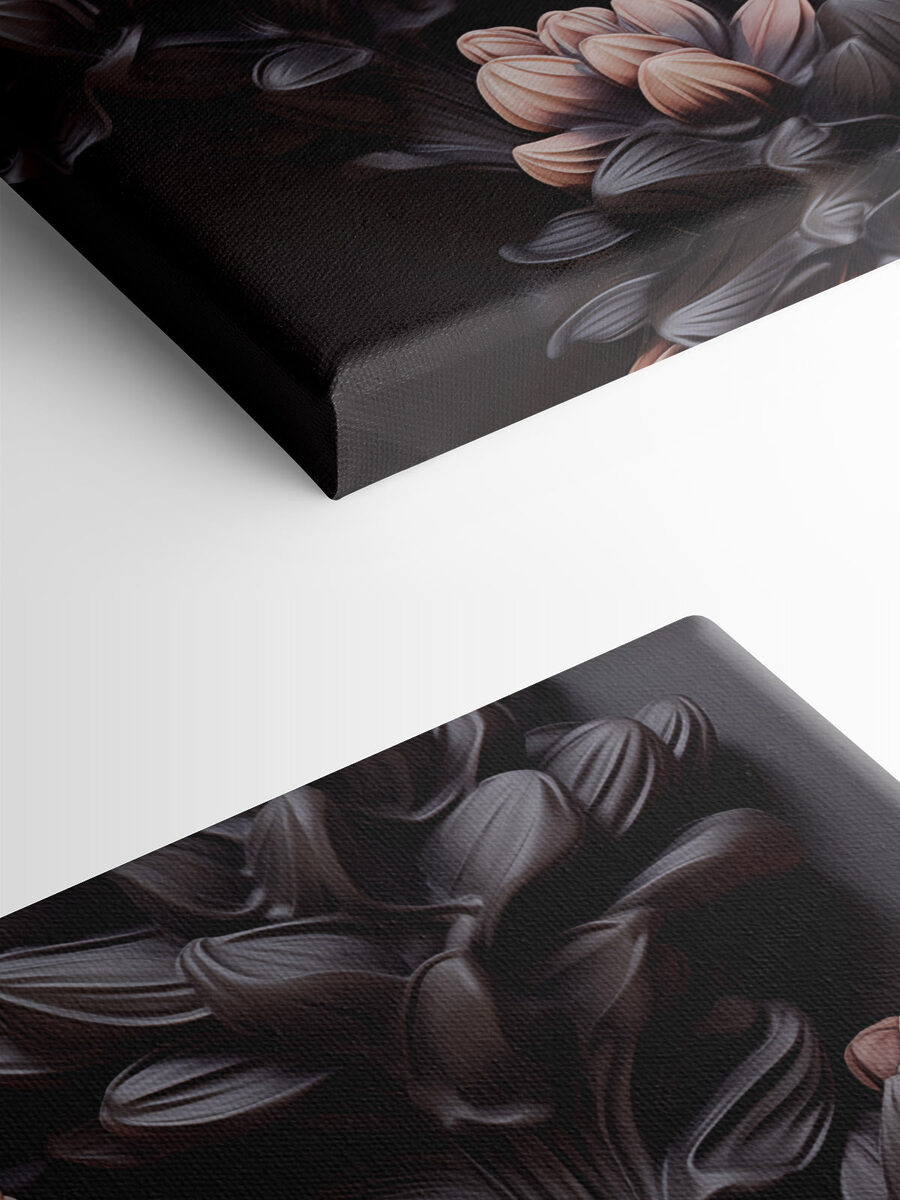 Erhellen Sie einen Raum mit diesem atemberaubenden Leinwanddruck mit Blüten, die sich vor einem dunklen Hintergrund abheben, wie das Flüstern der Natur in einer schattigen Welt. Es ist, als würde man einen geheimen Garten ins Haus holen, in dem jedes Blütenblatt eine Geschichte erzählt. Stellen Sie sich vor, Sie nippen an Ihrem Tee, lehnen sich zurück und spüren, wie diese heitere Stimmung auf Sie überschwappt, als ob die Blumen sanft zustimmend nicken würden. Dieses Kunstwerk eignet sich perfekt für eine gemütliche Ecke oder eine auffällige Wand und verleiht einen Hauch von Eleganz, ohne spießig zu wirken. Es ist Kunst, die man einfach lieben muss und die Wärme und ein wenig Geheimnis in jeden Raum bringt.