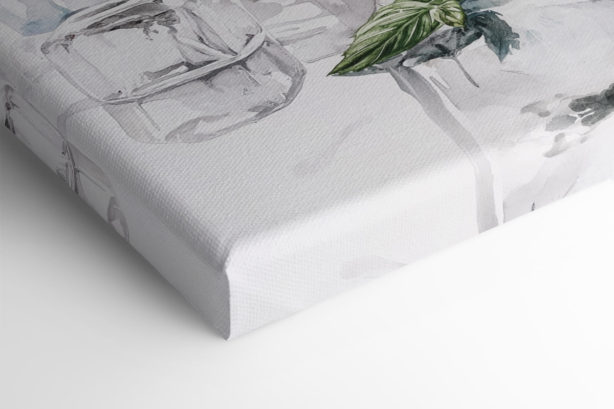 Dieser Leinwanddruck ist wie eine kleine Flucht in Ihr Lieblingscafé und hält ein erfrischendes Glas mit Eis, Limette und Minze fest. Es bringt die kühle Stimmung direkt in Ihren Raum und ist damit perfekt für alle, die sich gerne entspannen. Stellen Sie sich vor, wie Sie in Ihrem gemütlichen Wohnzimmer sitzen und der Duft von frischer Minze durch die Luft weht (auch wenn Sie sich das nur einbilden). Dieses Kunstwerk kann Gespräche anregen, einen Farbtupfer setzen und vielleicht sogar jemanden dazu inspirieren, sich einen Mojito zu mixen. Es ist der markante Touch, nach dem sich Ihre Wände sehnen und der ein Lächeln und gute Laune hervorruft!