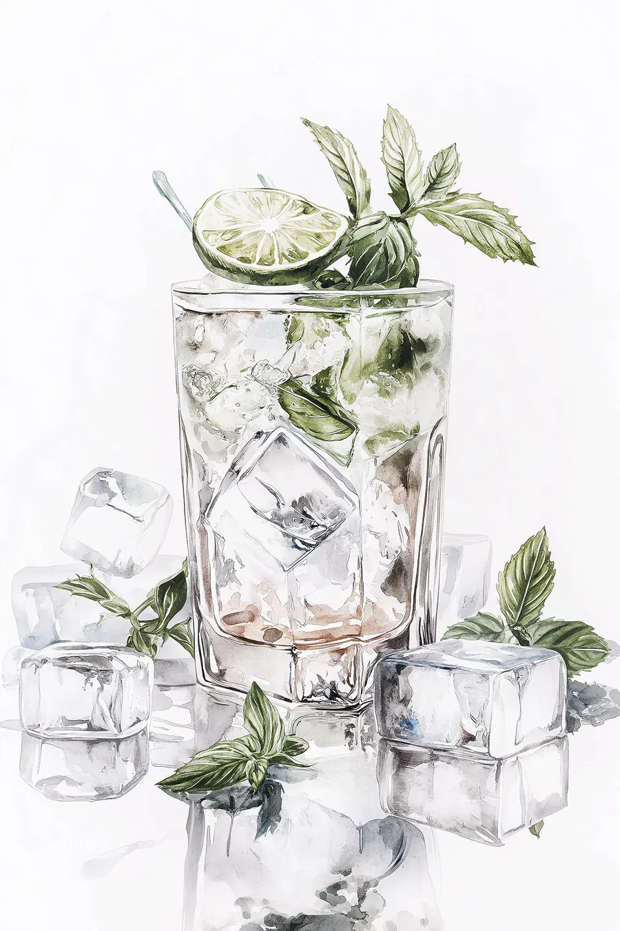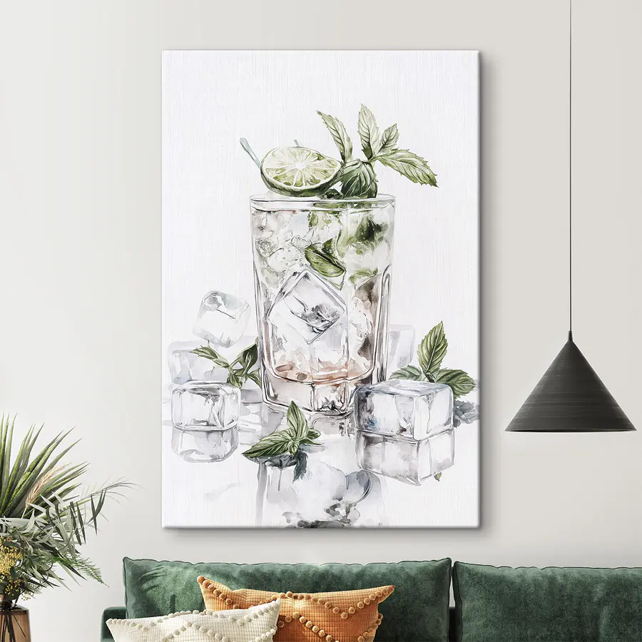 Dieser Leinwanddruck ist wie eine kleine Flucht in Ihr Lieblingscafé und hält ein erfrischendes Glas mit Eis, Limette und Minze fest. Es bringt die kühle Stimmung direkt in Ihren Raum und ist damit perfekt für alle, die sich gerne entspannen. Stellen Sie sich vor, wie Sie in Ihrem gemütlichen Wohnzimmer sitzen und der Duft von frischer Minze durch die Luft weht (auch wenn Sie sich das nur einbilden). Dieses Kunstwerk kann Gespräche anregen, einen Farbtupfer setzen und vielleicht sogar jemanden dazu inspirieren, sich einen Mojito zu mixen. Es ist der markante Touch, nach dem sich Ihre Wände sehnen und der ein Lächeln und gute Laune hervorruft!