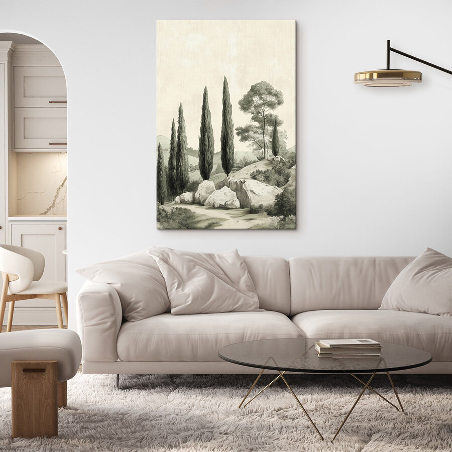 Holen Sie sich einen Hauch von Natur ins Haus mit diesem atemberaubenden Leinwanddruck einer ruhigen Baumgruppe auf einem sanften Hügel. Die Schwarz-Weiß-Töne schaffen eine klassische Atmosphäre, die jedem Raum ein Gefühl der Ruhe verleiht. Stellen Sie sich vor, Sie nippen an Ihrem Morgenkaffee und blicken auf diese hohen, eleganten Bäume, die Geschichten aus der Vergangenheit zu erzählen scheinen. Es ist, als hätten Sie ein kleines Stück Natur direkt bei sich. Perfekt für alle, die Einfachheit schätzen und Gespräche über die Wunder der Natur anregen wollen. Dieses Werk ist eine charmante Erinnerung daran, dass es bei Schönheit nicht immer um Farben geht – manchmal sind es die Formen, die die Fantasie anregen.