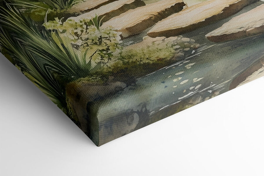 Dieser bezaubernde Leinwanddruck mit einem ruhigen Teich und einem bezaubernden Weg verleiht jedem Raum ein neues Gesicht. Stellen Sie sich vor, dass Sie jeden Tag in diese friedliche Szene treten, als ob das Flüstern der Natur Sie sanft zu einer Atempause auffordert. Die ruhige Einladung des Wassers kann zu Tagträumen oder Momenten der dringend benötigten Ruhe inspirieren. Es eignet sich perfekt für eine gemütliche Leseecke oder über einem beruhigenden Arbeitsbereich und sorgt für einen Hauch von Entspannung. Es ist, als ob Sie sich ein Stück japanischen Gartenzens in Ihr Zuhause holen würden – wer könnte nicht ein bisschen mehr Ruhe gebrauchen?
